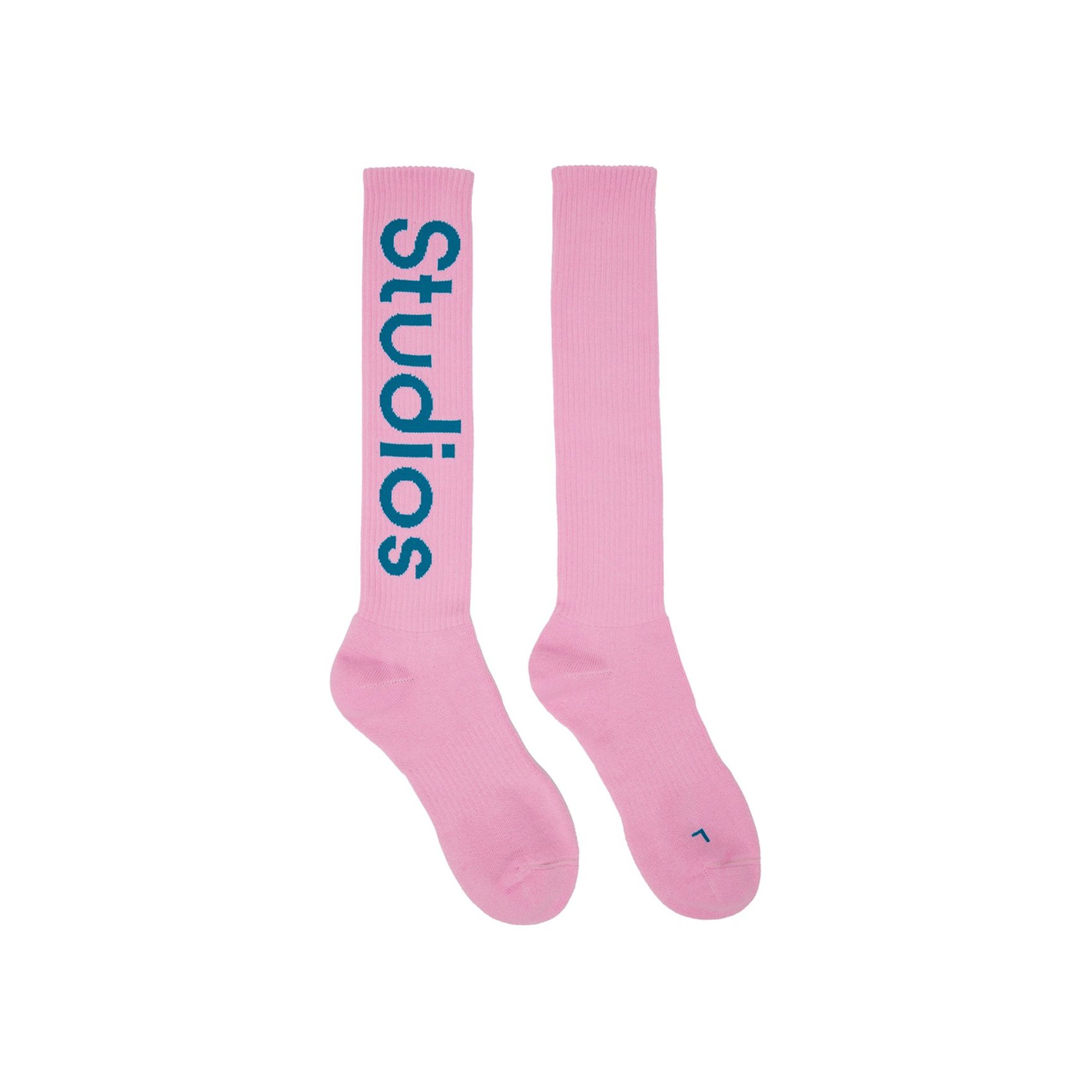 大胆に入ったブランドロゴとピンクのコントラストが目を引く「アクネ ストゥディオズ(Acne Studious)」のソックス。トレンドのミニスカートと合わせても可愛くきまります。