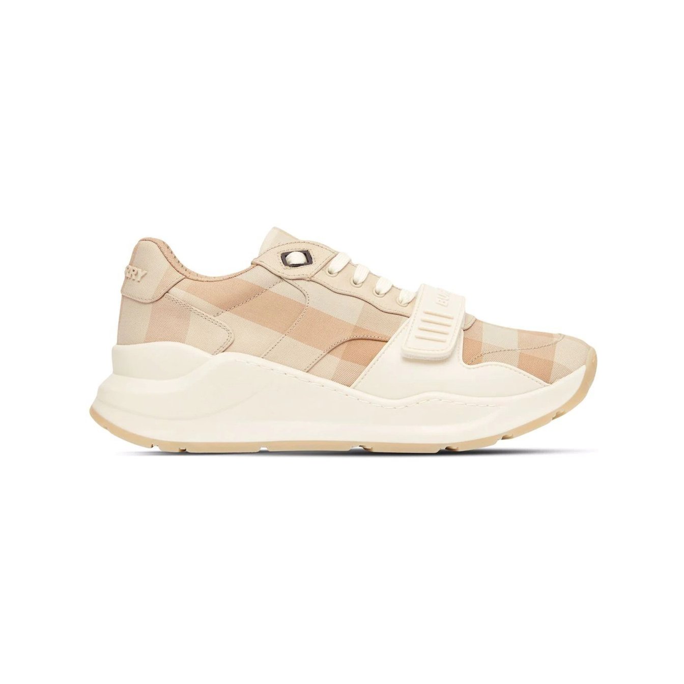 ぽってりとしたフォルムと、ワントーンのチェックデザインに惹かれる「バーバリー(BURBERRY)」のスニーカー。シューレースとベルクロの斬新な組み合わせで完成された、着用感とデザイン性に夢中になりそうな可憐なムード漂う一足です。
