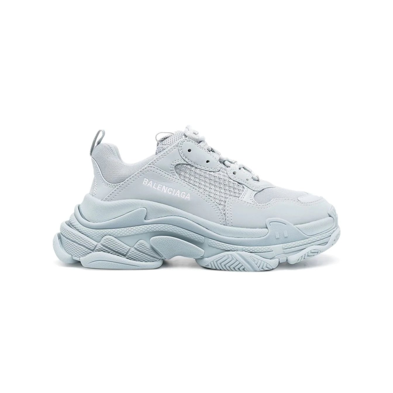 アイコンスニーカーのひとつとして支持を得ている、「バレンシアガ(BALENCIAGA)」のトリプルSスニーカー。スタイルアップを叶えるチャンキーなラバーソールと、淡いブルーがコーディネートに溶け込む、春夏シーズンにぴったりの一足です。