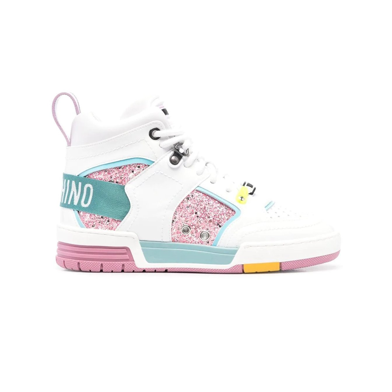 最後にご紹介するのは、遊び心溢れるデザインにセンスを感じる「モスキーノ(MOSCHINO)」のハイカットスニーカー。煌びやかなグリッターパネルや、左右それぞれ異なるカラーパターンを採用するなど、ユーモアとおしゃれを堪能できるアイテムです。