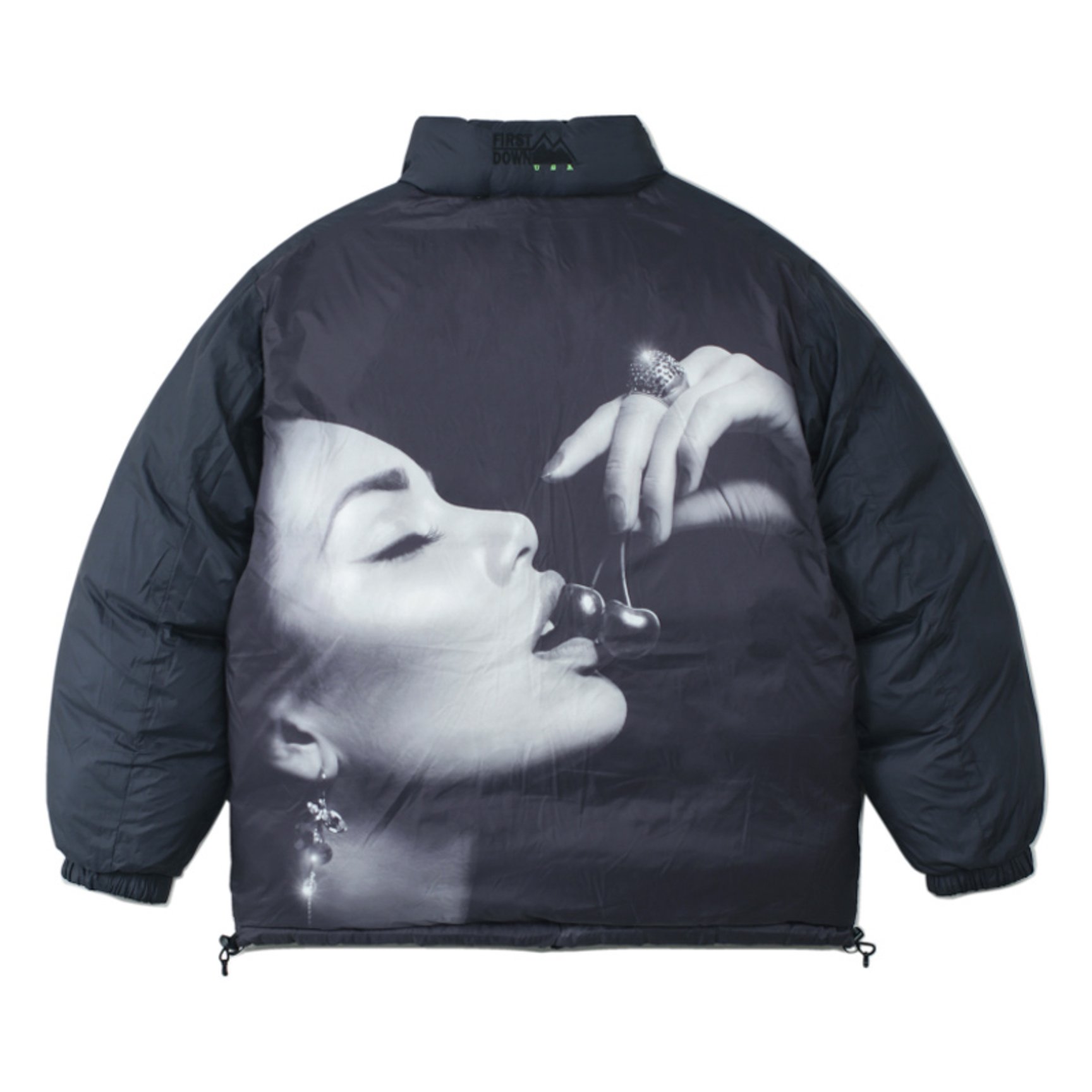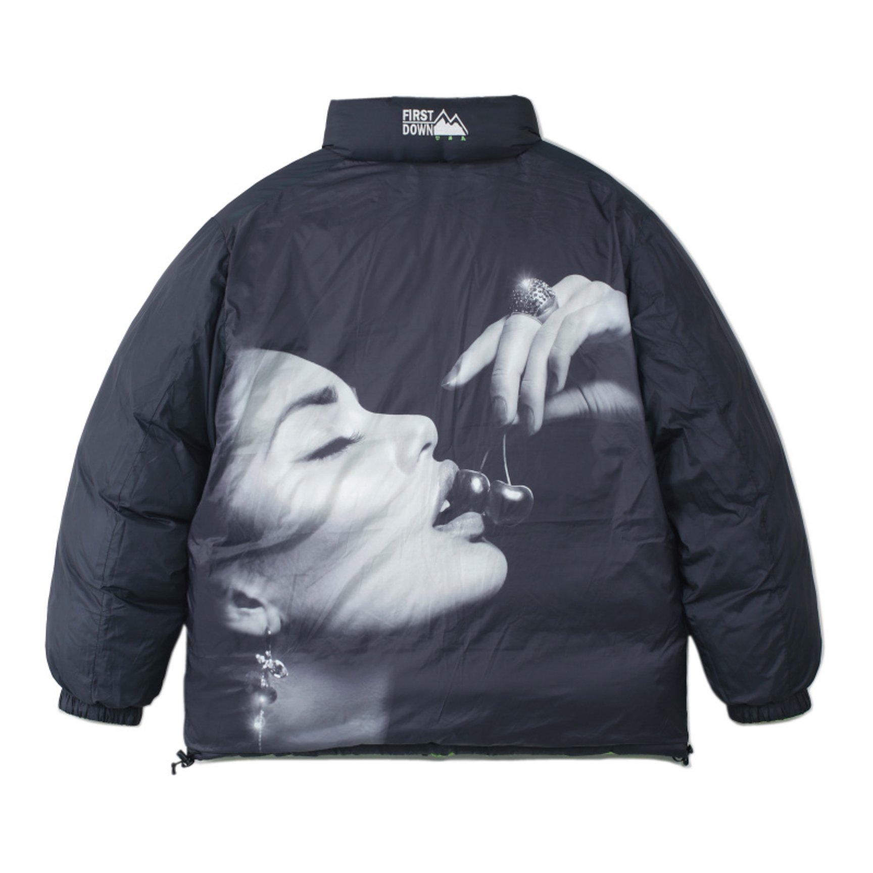 HUFのグラフィックを落とし込んだファーストダウンのバブルジャケット