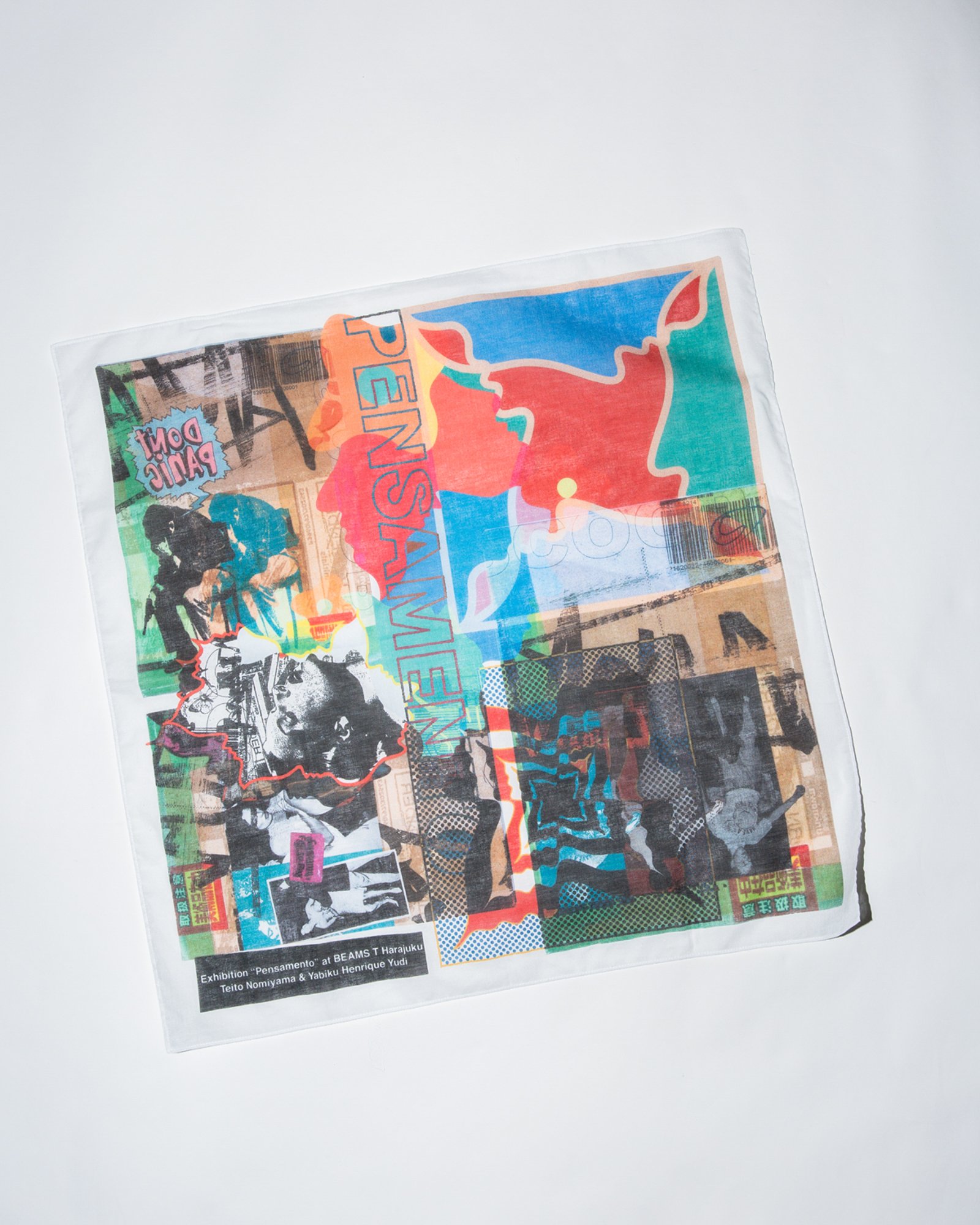 コラージュアーティストのヤビク?エンリケ?ユウジ(Yabiku?Henrique?Yudi)とグラフィックデザイナーのテイト?ノミヤマ(Teito?Nomiyama)の若手アーティスト2人による合同エキシビション「Pensamento(思想)」がビームス?T?原宿で開催されます。会場では「不完全さ」をテーマに道に落ちていたモノや古雑誌をコラージュしたヤビク?エンリケ?ユウジの作品と、「他人に見られている社会で何者かにならないといけないという焦燥感」をドローイングで表現したテイト?ノミヤマの作品を展示販売。また、それぞれの作品を落とし込んだフーディー(1万5000円)やスウェットシャツ(1万3500円)、ロングスリーブTシャツ(7000円)に加え、両者の作品を組み合わせたコラボ作品としてフーディー(1万5000円)とトートバッグ(3500円)、バンダナ(2800円)を販売します。