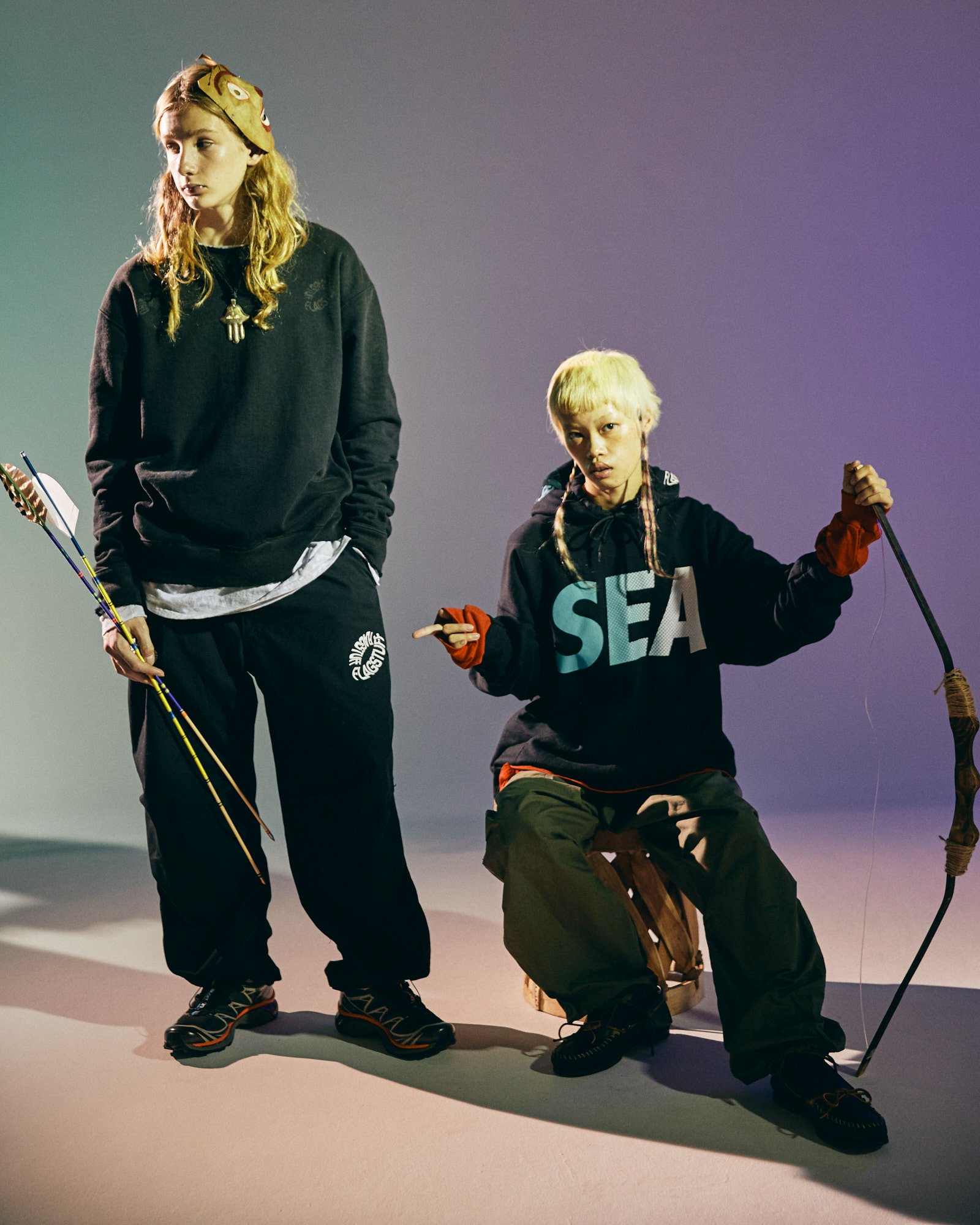 「ウィンダンシー(WIND?AND?SEA)」が、「フラグスタフ(F-LAGSTUF-F)」とのコラボアイテムを発表。海と太陽をイメージした鮮やかなロゴを散りばめたプリントTシャツ(8250円)をはじめ、ウィンダンシーのロゴを配したフラグスタフ定番のボックスシルエットスウェット(3万800円)や、ミリタリーパンツ(3万800円)、フーディー(1万7600円)といった全7型を製作しました。フラグスタフの旗艦店「フォーストア(Four Store)」などで販売します。