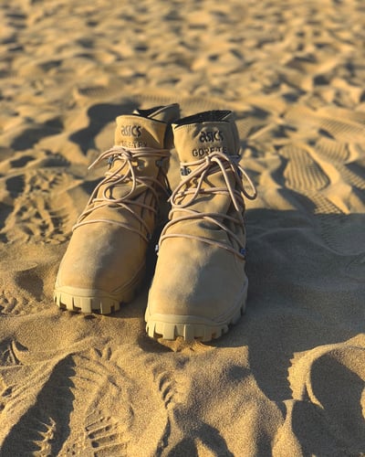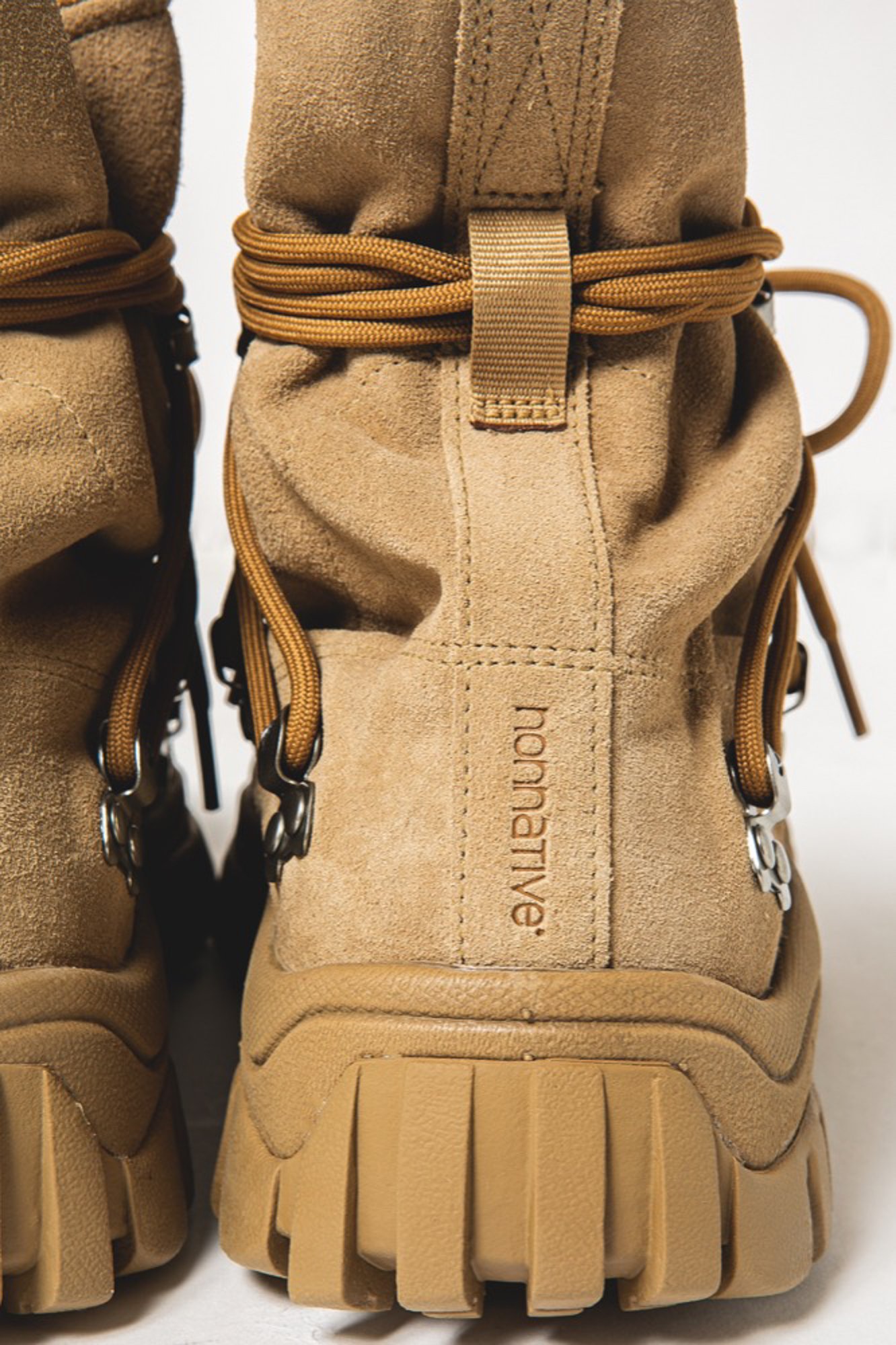 「ノンネイティブ(nonnative)」から、「アシックス(ASICS)」とのコラボシューズが登場。2018年に発売したゴアテックス(GORE-TEX?)搭載のゲルイエッティ(GEL-YETI)をアップデートし、シューレースのアイレットの数を増やしたほか、ヒール部分にループを作ることで履き口の広さの調整が可能に。価格は税別2万2000円。ベージュとブラックの2色を用意します。