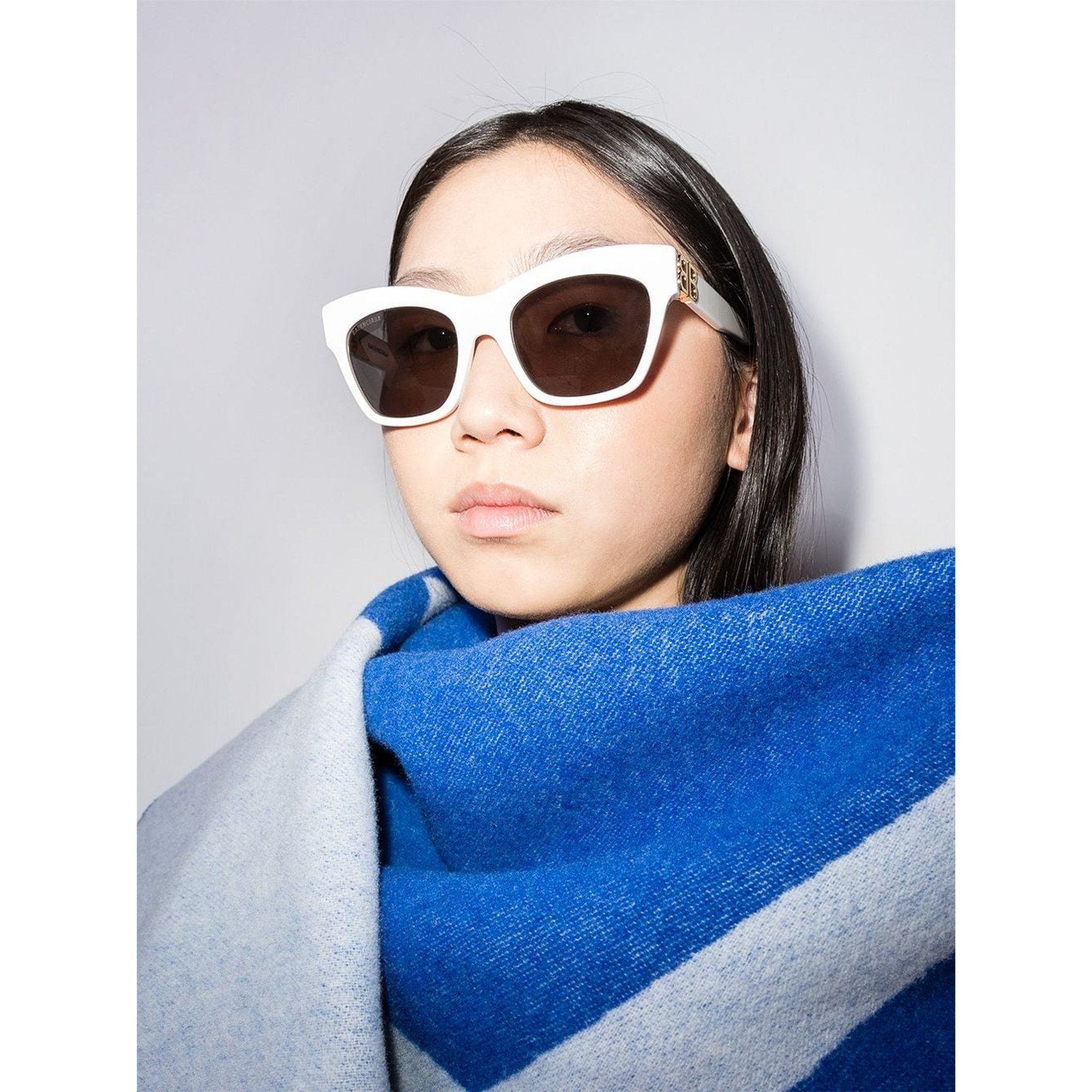 大胆なホワイトフレームのサングラスは、「バレンシアガ(BALENCIAGA)」のアイテム。リムとテンプルを繋ぐロゴが光る、スポーティにもストリートにも似合う一本です。エイリアンチックな釣り目のサングラスに、今季は是非挑戦してみてはいかが?