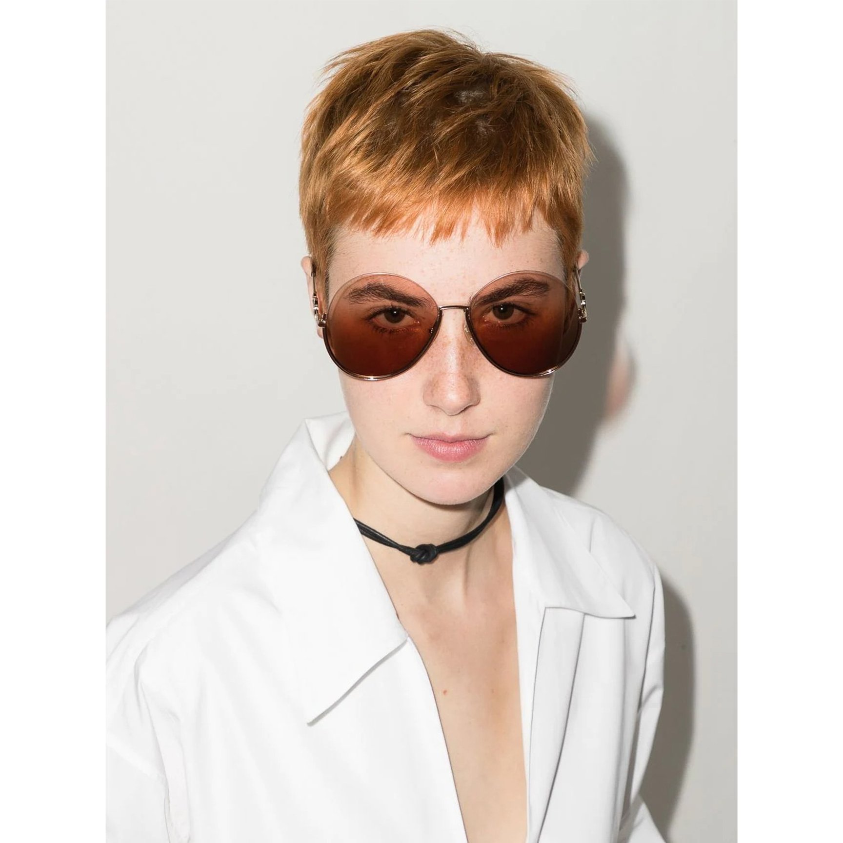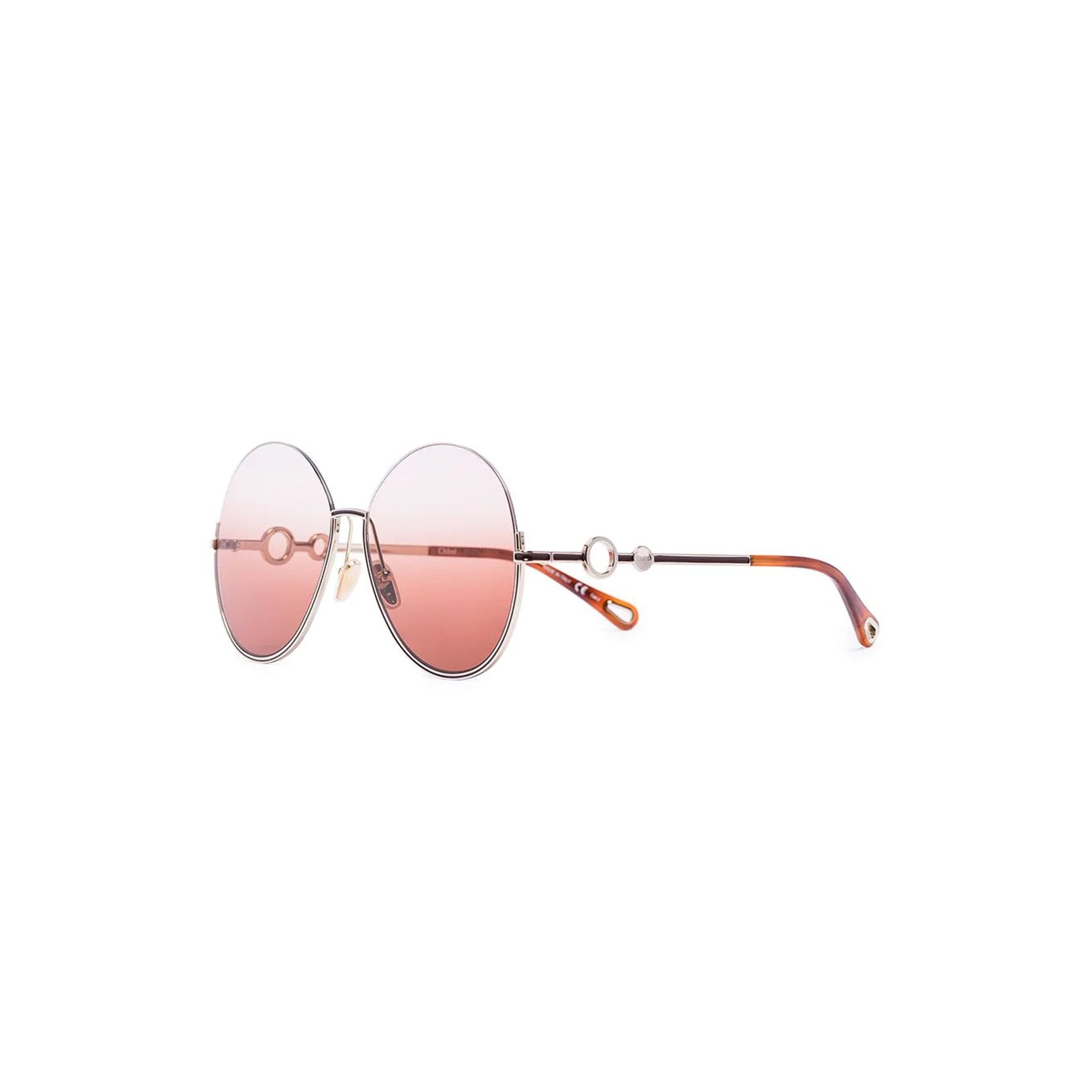 落ち着きのあるピンクのグラデーションが、レディなオーラを放つ「クロエ(Chloé)」のサングラス。大きく円を描くレンズと、テンプルのラウンドディテールがキュートな遊び心とエレガンスを両立させています。