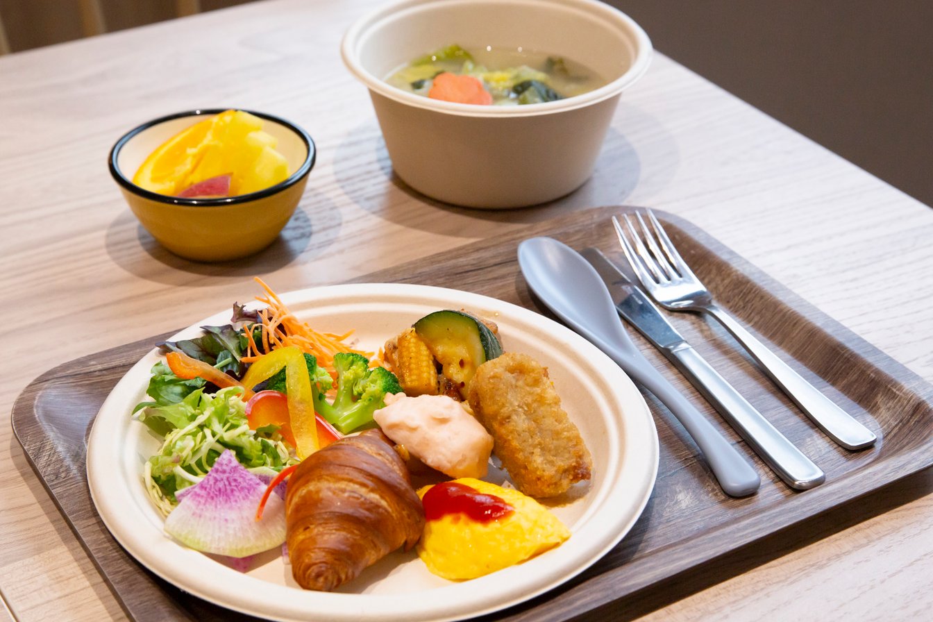 朝食ビュッフェは6時半から9時まで提供し、具だくさんの野菜スープや惣菜、日替わりやご当地メニュー、季節のフルーツなど栄養バランスに特化した朝食を堪能できる。ロビーには朝食の混雑予想ボードを設置し、宿泊者が事前にマグネットで印をつけることで混雑を避けて、優雅な朝を過ごすことも可能。