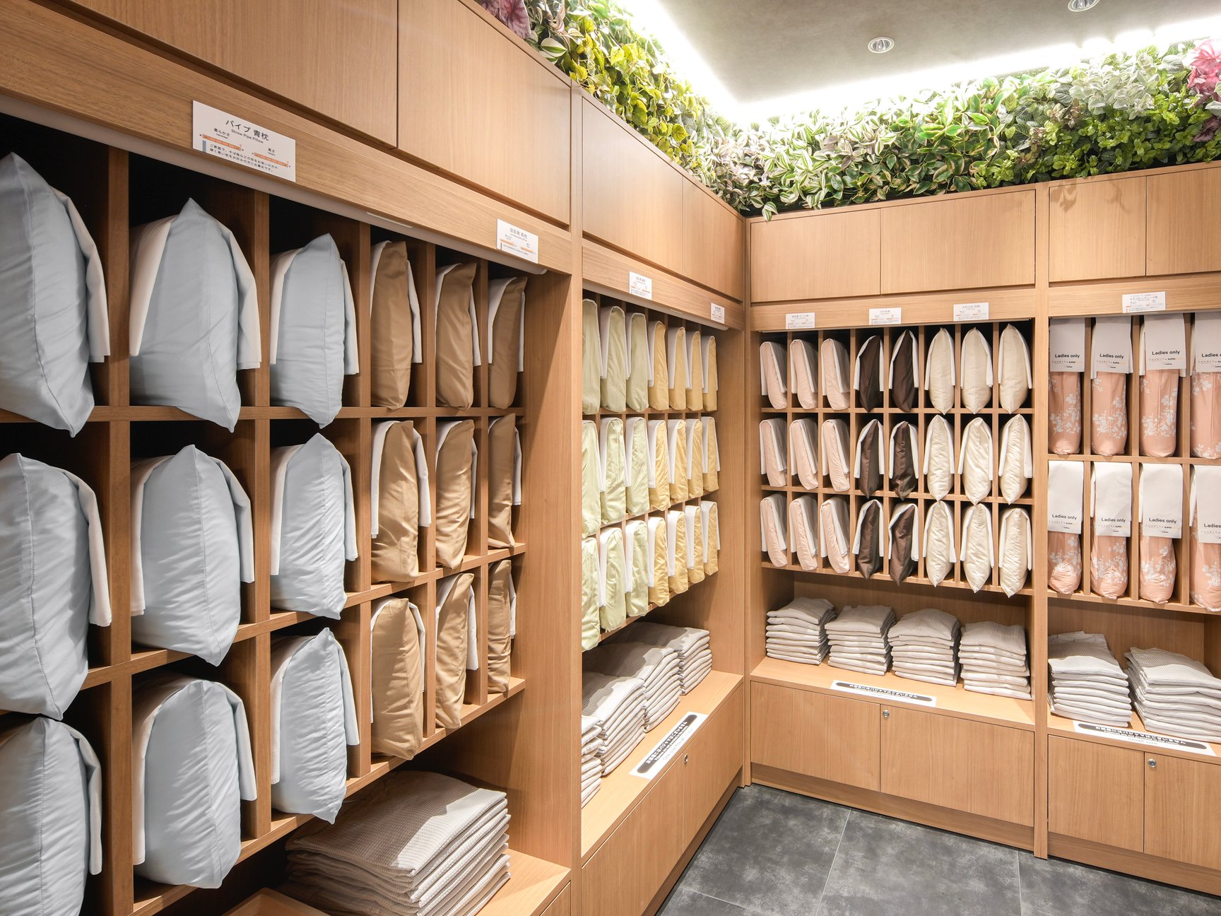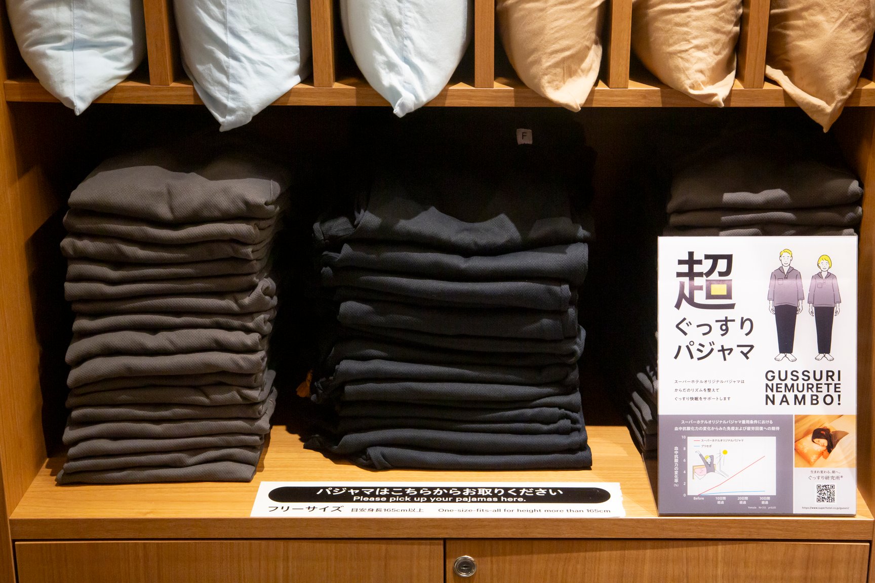 15時にチェックインを済ませると、次はスーパーホテルの目玉ともいえる枕選び。出張やせっかくの旅先で眠れなくなるのは死活問題。ロビー横に設置された“ぐっすりコーナー”では8種類の枕を用意している。「もちふわレディース枕」のほか、パイプ入りの硬め枕、香りでリラックスできるヒノキチップ入りの枕、首のカーブにフィットするタイプなど低反発枕は高め、普通、低めと3段階の高さで用意。それぞれが色分けされており自分の好みにあわせてセレクトすることができる。なお、選べる枕は公式ECサイトからも購入することも可能。
