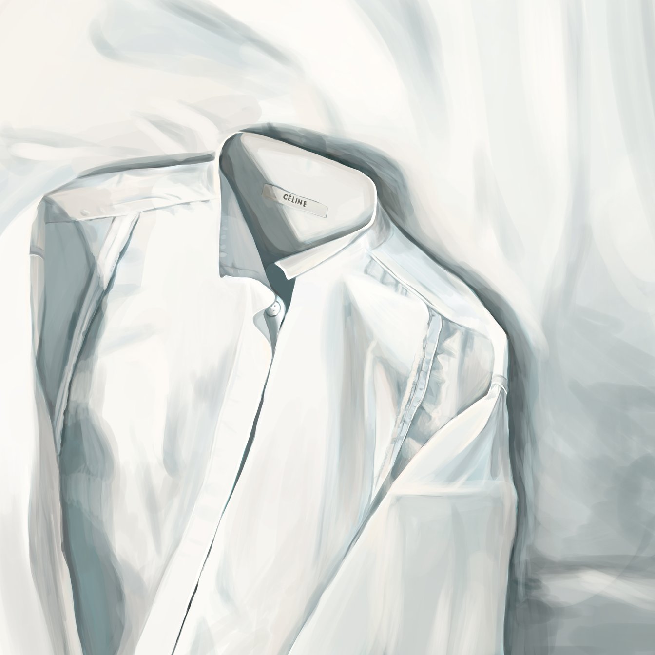 そんなフィービーは当然、セリーヌのキャリアの中でも語り継がれる名作を連発した。例えば、現在もアイコンバッグとして人気を博すラゲージシリーズは2009年の誕生から数々のセレブに愛され続け、自身のキャリアにとっても重要な意味合いを持つ名作だ。そのヒットぶりは“第二のバーキン”とも呼ばれ、単にセリーヌ在籍時の彼女の代表作という枠を超え、それまでのセリーヌの歴史を代表するアイコンバッグとなったと言っていいほどだ。アパレルでは、クロンビーコートやチャンキーニットが既に著名ブランドのアーカイブ作品を取り扱う有名ショップでもキュレーティングされ高値で取引されるなど、数々のA面的ヒット作を世に送り出してきたフィービーのセリーヌだが、僕が特に魅力を感じ、そしてその魅力を皆に知ってもらいたいアイテムが「タキシードシャツ」だ。