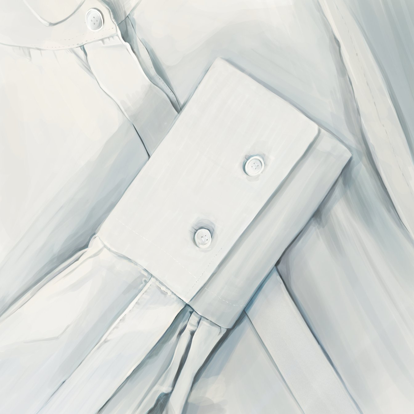 フィービーのデザインの神髄は、女性をエンパワーメントするようにマスキュリンな要素をウィメンズウェアに落とし込むというアプローチと、繊細なドレスウェアをカジュアルダウンすることによって生まれるエフォートレスなスタイルにある。デザインを手掛けた数あるアイテムの中でも、フィービー本人も気に入って着用しているというこのタキシードシャツは、男性用の礼服であるタキシードに合わせる烏賊胸襟のシャツをデザインソースとしている。その一方で、自身のスタイリングでも大胆に腕まくりをして着用したり、本来カフスを付けることが前提となる袖口はカジュアルなボタン留めにアップデートされていたりと、一般的には着こなしに明確なルールが設けられているメンズのドレスウェアを、見事に彼女が描く“力強いながらもエフォートレスな女性の世界観”に昇華している名作だ。