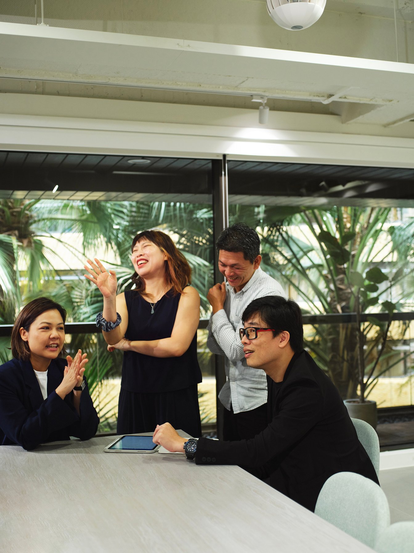 左からマカロットオープンイノベーション部門のプロジェクトマネージャー ヴェネッサ?チョウ氏、R&D部門のディレクター エリー?チャン氏、ライトマトリクス COO デニス?チャオ氏、CEO ジョエ?チェン氏