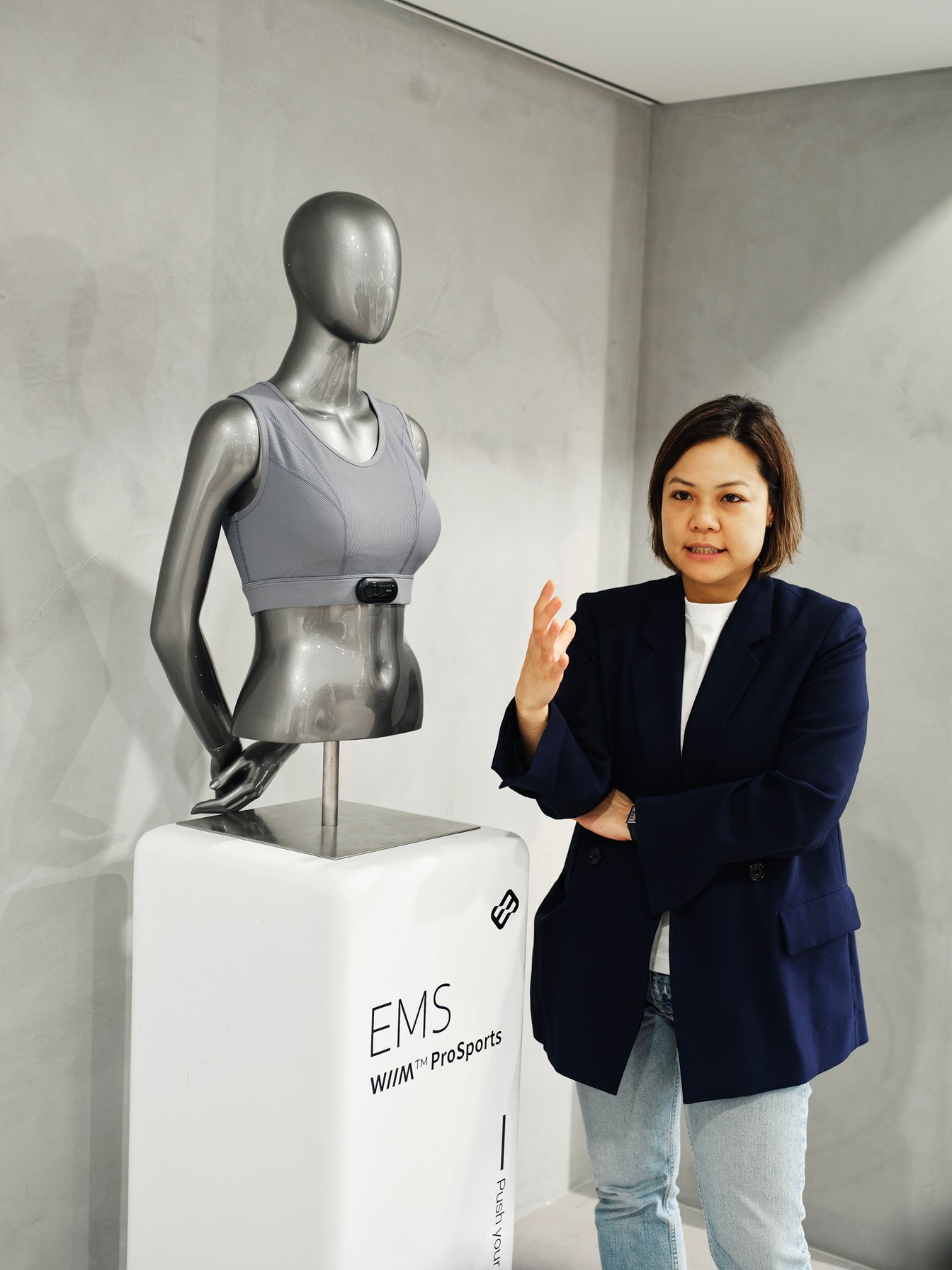 スポーツウェアの好調に合わせて、同社はAI技術を駆使したスマートヘルス系のスポーツウェアを複数開発。電気刺激による筋肉訓練によってヒップアップ効果が期待できる「EMS筋電気刺激ヒップアップショーツ」や、心電図と同じ技術を用いることでより正確に自身の活動量を測定できるウェア「スマートヘルスモニタリングプログラム2.0」など、スマートヘルス系のプロダクトなどを立て続けに発表し、いずれのアイテムも台湾エクセレンスを受賞した。EMS筋電気刺激ヒップアップショーツについて、アレックス氏は「EMSを使った商品は日本市場で受け入れ度が高い」とし、来年から日本での展開を目指している。また、スマートヘルスモニタリングプログラムは、発売3年目を迎え、年間で約30万USドル(約4500万円)の売上を記録。イングランドのプロサッカーチームなどにも技術提供をしている。