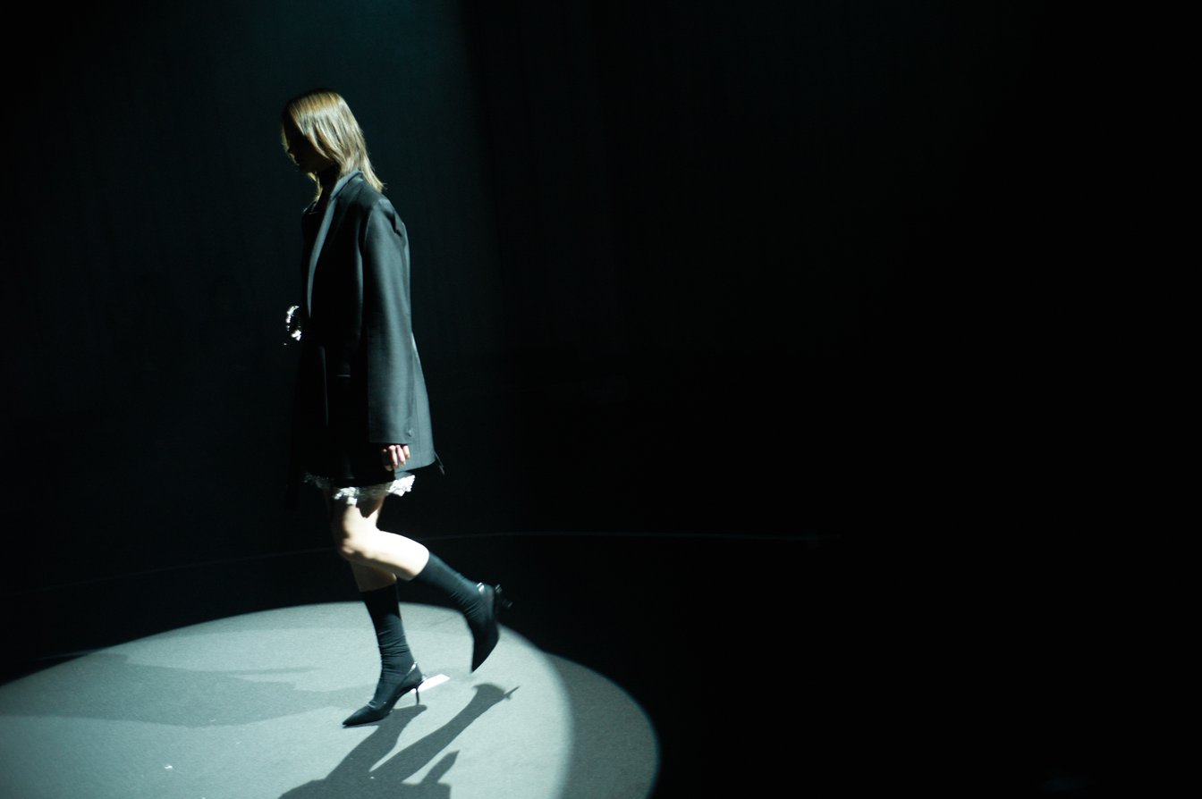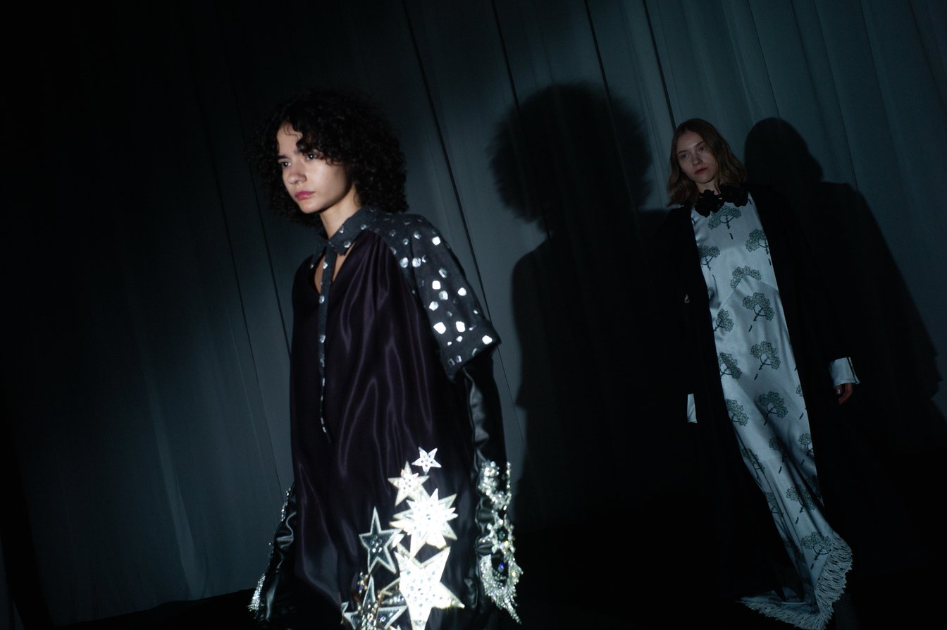「テルマ(TELMA)」を手掛ける中島輝道は、仕事帰りに通った、静まり返った"クリーピー(不気味)"な真夜中の表参道の街並みから着想を広げ、多面的な夜の表情を独自の感性で切り取り、コレクションに落とし込んだ。