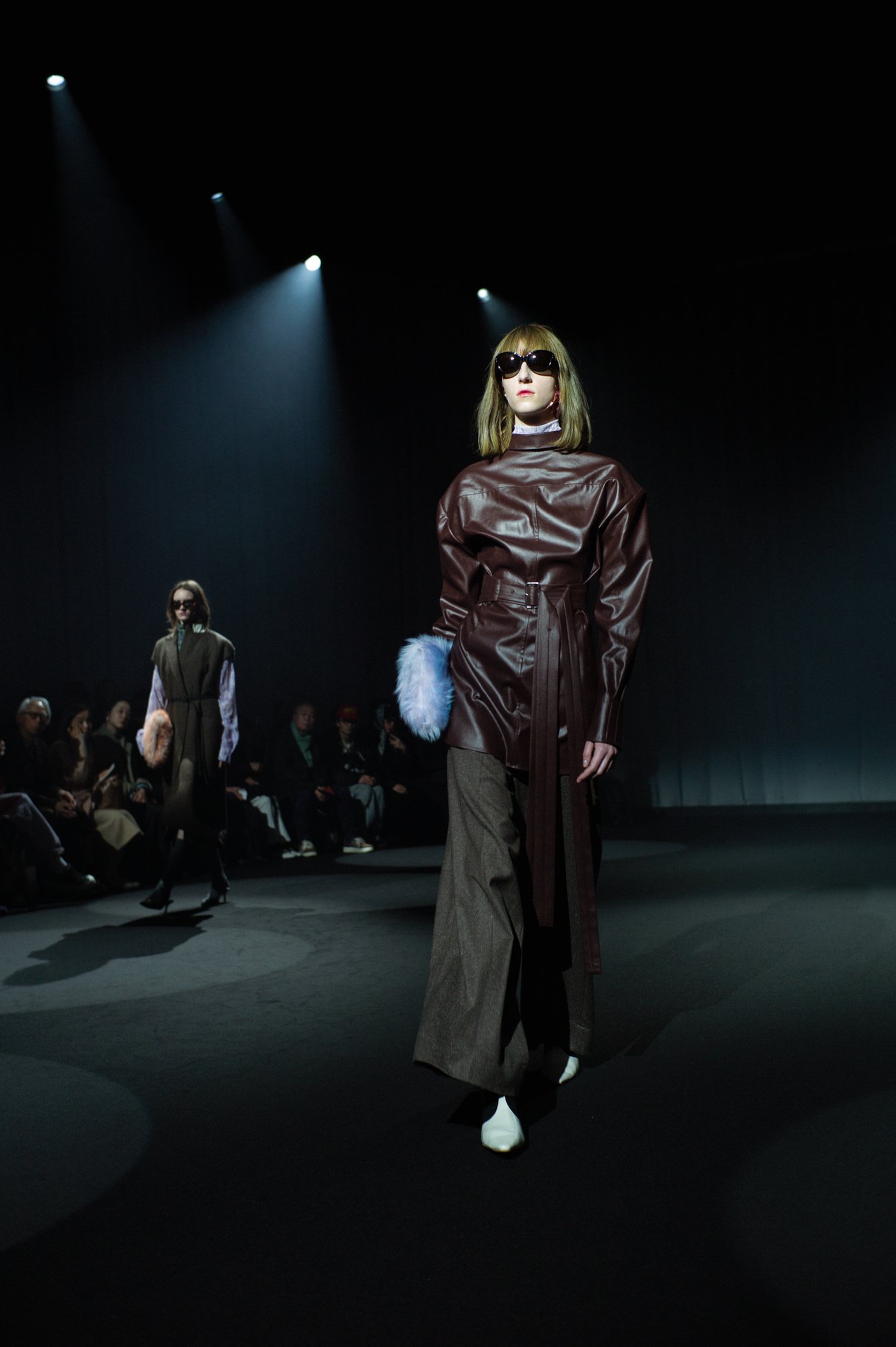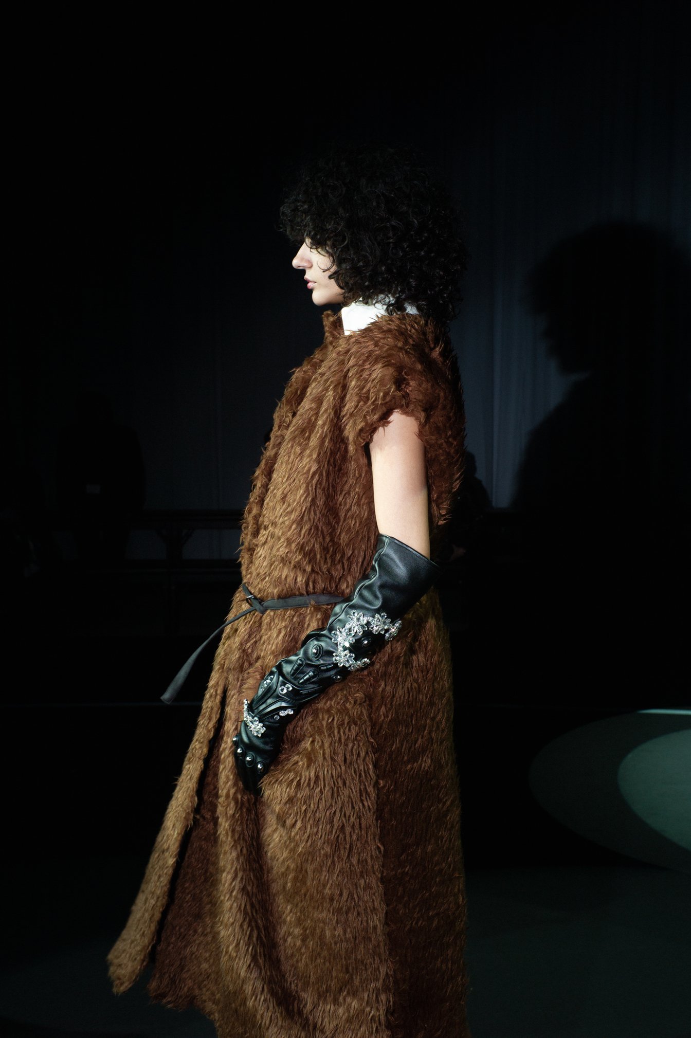 また、レザーに見えたシャツは薄手のポリエステル製で、ファーコートに見えたものは毛足の長いリサイクルポリエステル素材だった。テルマの服作りは、一見しただけでは理解できない深い奥行きを持っている。