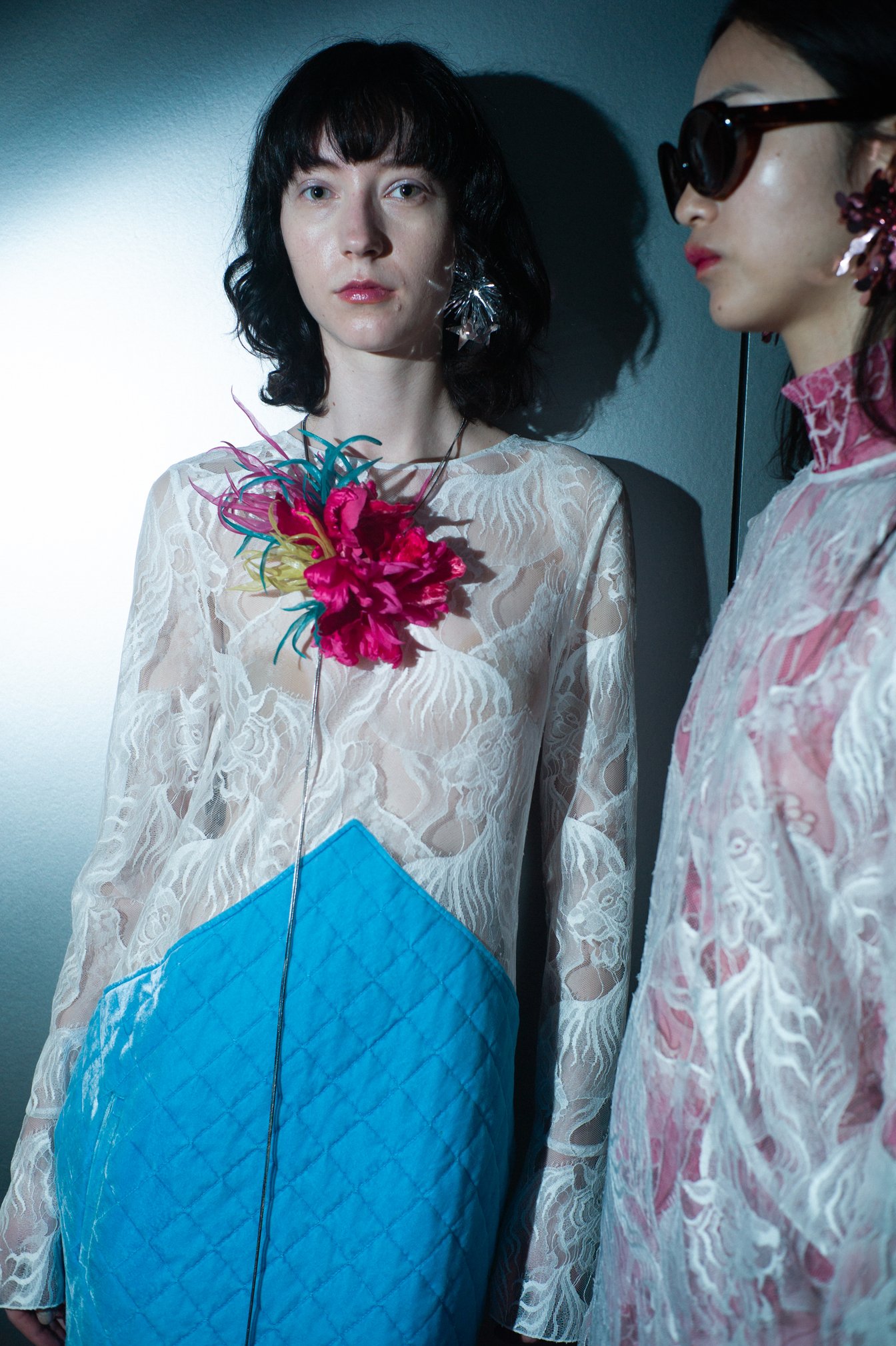 話を冒頭の"夜"のテーマに戻すと、今季のコレクションには中島が思い描くさまざまな夜の記憶が形となって表現されている。例えば、子どものパジャマパーティーにインスパイアされたパジャマスタイルや、ブランケットに包まった姿を昇華させたキルティングのイブニングドレスなどがある。