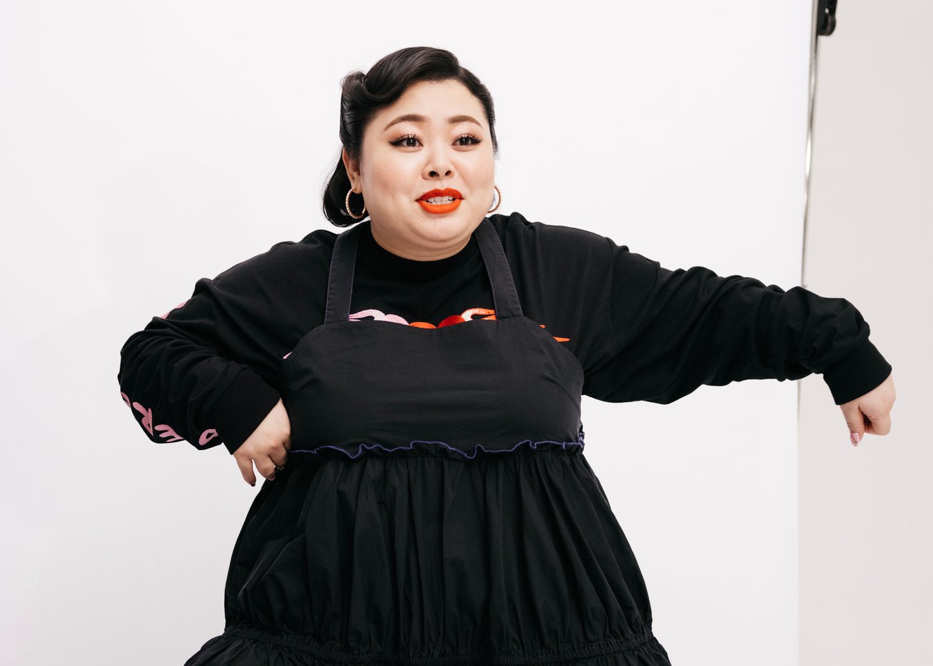 渡辺:そうなんですよ。なので、どんな体型の人でもフィットするようになっているんじゃないかな。プニュズのスタッフってみんな痩せていて、プラスサイズの体型をわかっているのが私しかいないんです。ブランド立ち上げ時は、私が書いたデザイン画を元にサンプル発注していたんですが、ファーストサンプルが私が2人分入るくらい大きかったんですよ。「化け物みたいな扱いしてんじゃん!」とその時は殺意を覚えて(笑)。でもそれを経験して、太っていても肩幅や骨格は変わらないということを改めて実感できたんです。プニュズを通して胸や背中、お腹、太腿のディテールを素人なりに勉強してきたので、そのノウハウをテンにも活かしました。