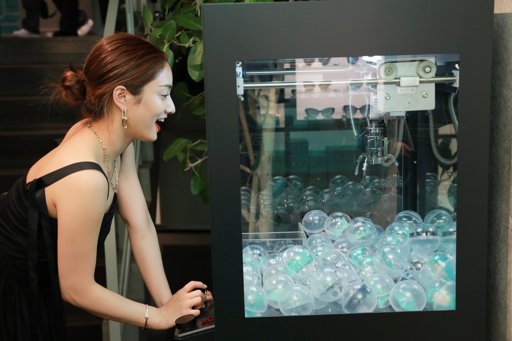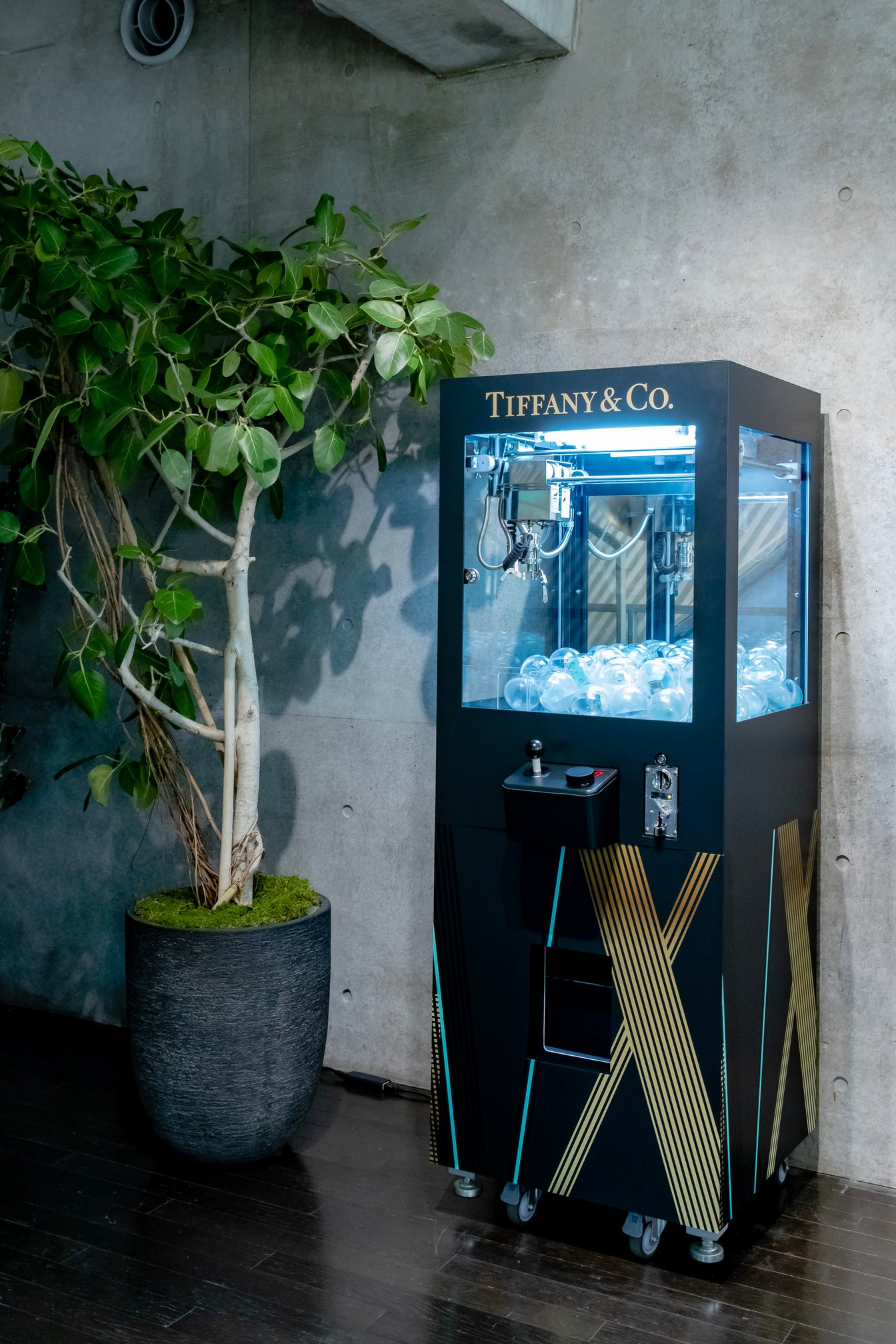 地下1階から階段を上がっていくと、中2階にはクレーンゲームのマシーンが出現。4種類のピンバッジやミニフレグランス、ティファニー カフェのドリンクチケットなど、豪華な景品が入ったクレーンゲームは、店内で購入をした人限定で遊ぶことが可能。吉沢さんは一発でピンバッジをゲットしていました。