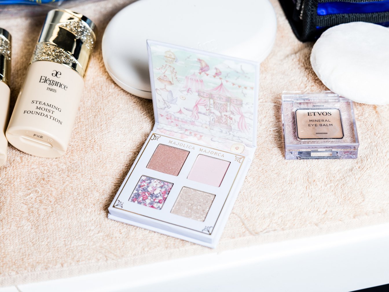 今回、使用したアイテムがマジョリカ マジョルカで、手に届きやすい価格帯で、誰でも使いやすい色味なのが特徴です。なので、自由に使って欲しいですね。今回のバックステージではメイクは透け感を意識して、まぶたの血管を透かせて見せるなど、肌も唇も本来の色を消さずに活かしています。素肌に色のないパールをのせると、その人に合った色に光るので、ぜひみんな挑戦してみてほしいです。
