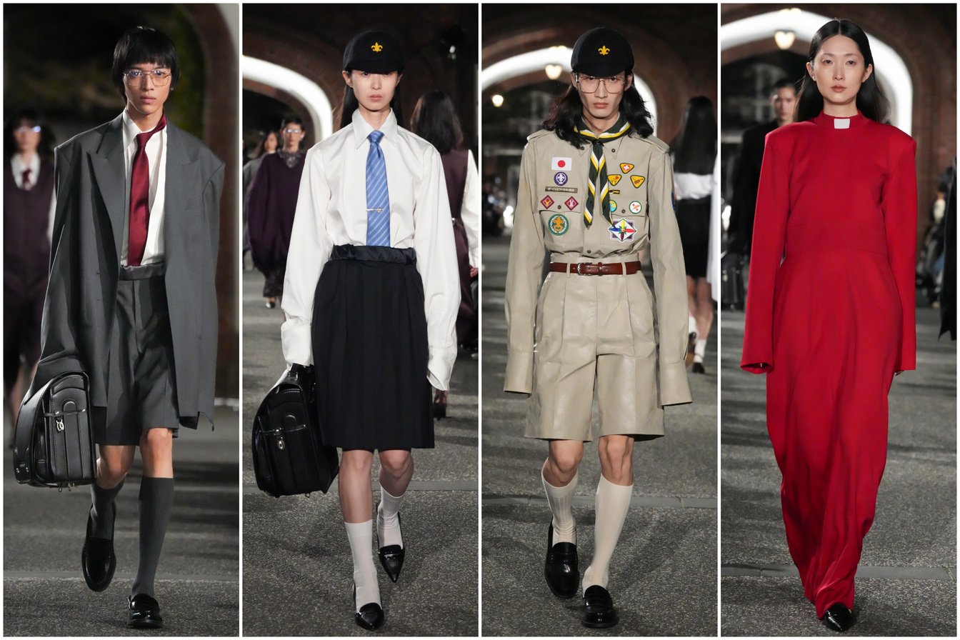 ケイスケヨシダの2024秋冬コレクションは特定の人間像を作らず、服を支点に、その服のキャラクターに合ったモデルがキャスティングされた点が、ほか3ブランドとのアプローチの違いです。1人ひとり全く違う人間?違う服ではあるものの、なぜかみんな同じ空気をまとっていた計50体のルックが圧巻。モデルたちは「M·A·C(メイクアップ アート コスメティックス)」キーメイクアップアーティストの池田ハリス留美子氏によって、脚色する必要がないその人「らしさ」が抽出されたメイクが施されました。アイメイクとアイブロウはほとんど作り込まれず、モデルたちの顔立ちをそれぞれが身にまとう“服のテーマにはめ込む”ことを重要視。クリーンな肌や唇は「どうして彼?彼女を起用したのか」がわかるように「付けた感」がないほど薄く伸ばされ、リップは透け感のあるマットリップでエフォートレスな印象に。ヘアメイクはメイクアップ同様に「素材活かし」をテーマに、「トニーアンドガイ(TONI&GUY)」の雑賀英敏氏によって手掛けられました。顔立ちの印象を和らげたり強めたり微調整されながら、モデルのそのままに近い雰囲気が残されました。