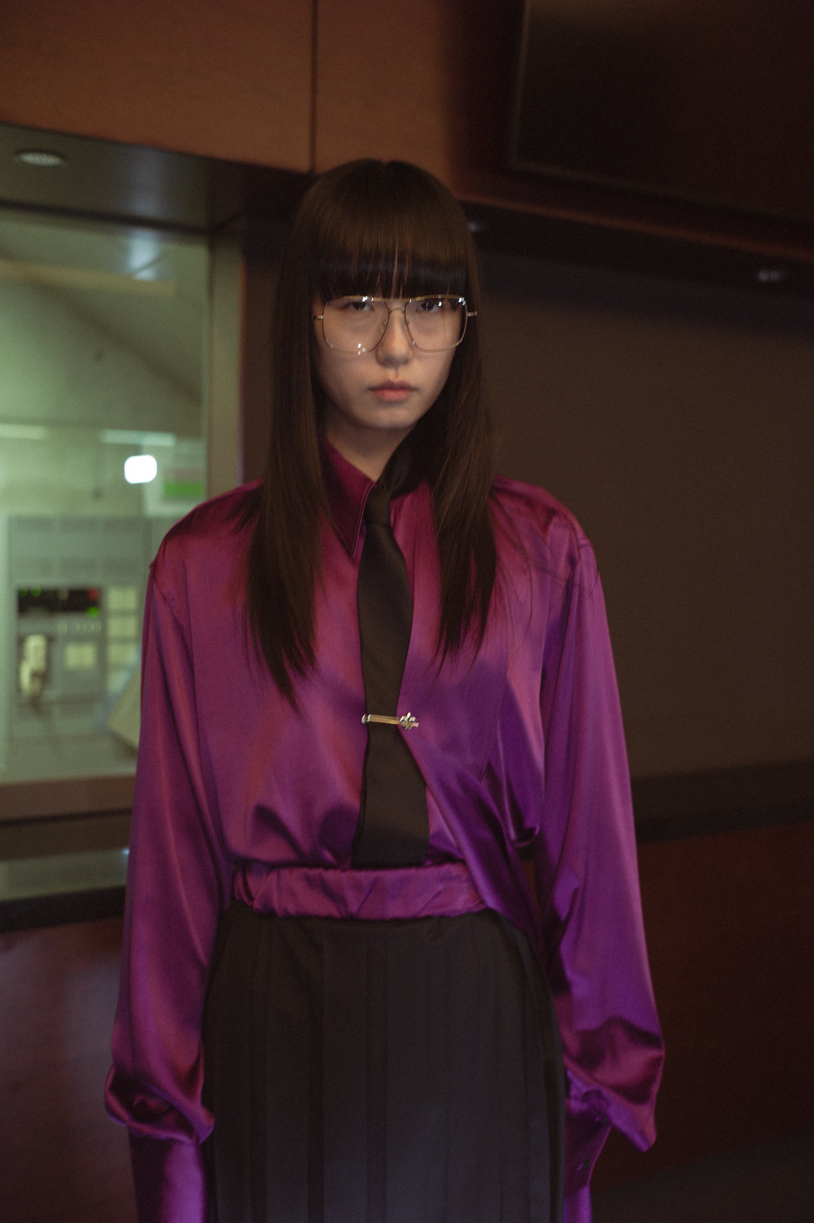 catch up:「ゴシックなメイク」と聞くと黒を基調としたアイメイクを想像してしまうところですが、フェティコのアイメイクはグレーを使ったピュアなワントーン。肌の重さとリップの暗さで表現された「ゴシックが好きな女の子」の像は、適度に肌見せしたストイックなシルエットとマッチ。スキンとリップの明度を調整すれば、春夏でも軽やかにまとめられそう。