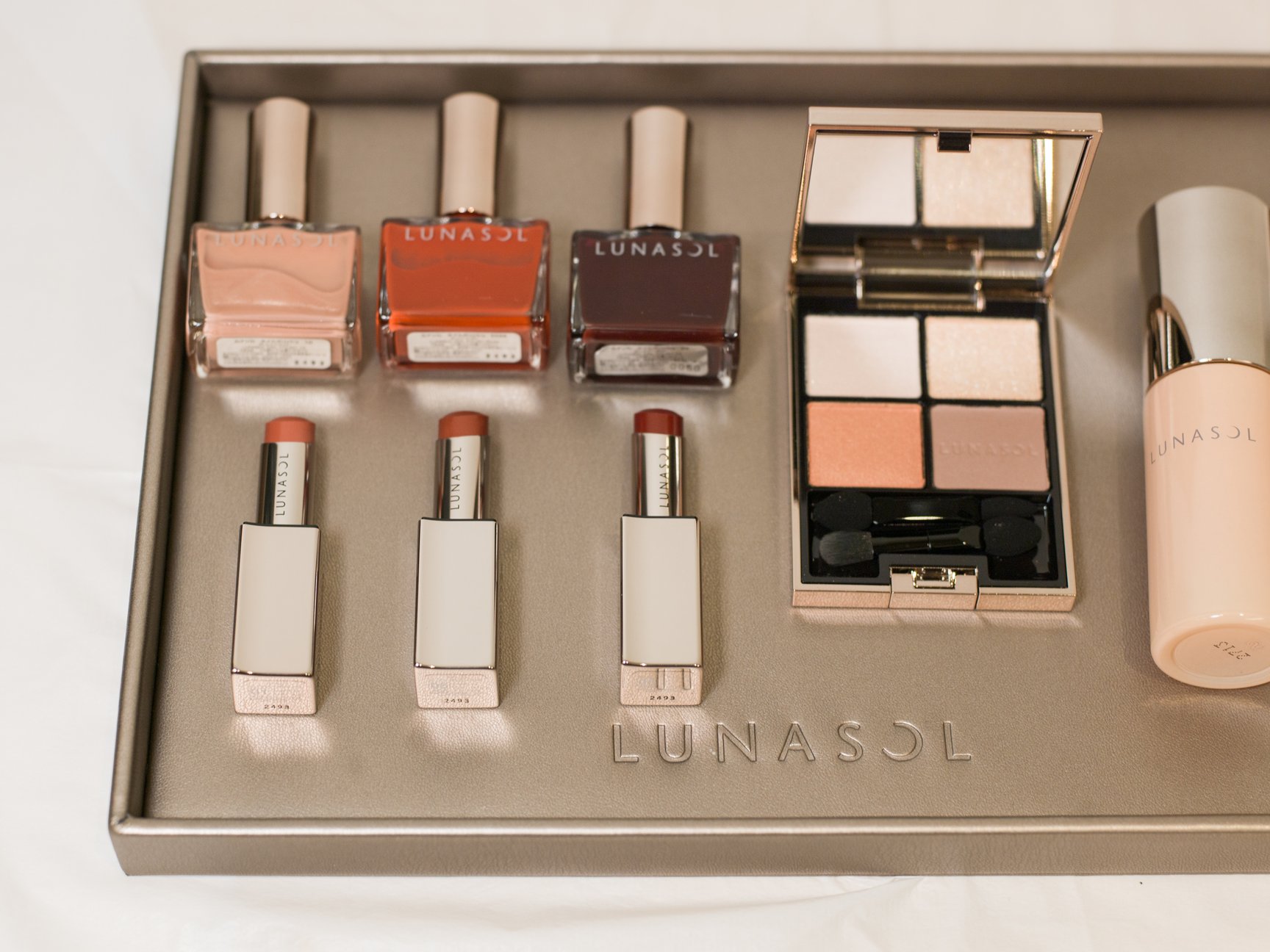 ヨウヘイ オオノは「大人に向けたクラシック」をテーマにしたコレクションを披露。メイクアップを手掛けた「ルナソル(LUNASOL)」のリードアーティスト平尾清香氏は、その大人を「ラグジュアリーな大人の女性」と表現し、メイクアップを施しました。ネイルとリップのカラーはベージュ、オレンジ、赤にそれぞれ揃え、モデルたちの強さや大人っぽさを強調。肌はリップの立体感を際立たせるためにツヤを抑えつつ、ささやかにラグジュアリーを表現するため頬の上にグロウな質感をプラス。ヘアメイクを担当したヘアスタイリストのCHINATSU氏は「ミニマム」と「クラシック」をイメージし、ナチュラルなスタイルとかっちりまとめたサイドバックのスタイルを作り上げました。