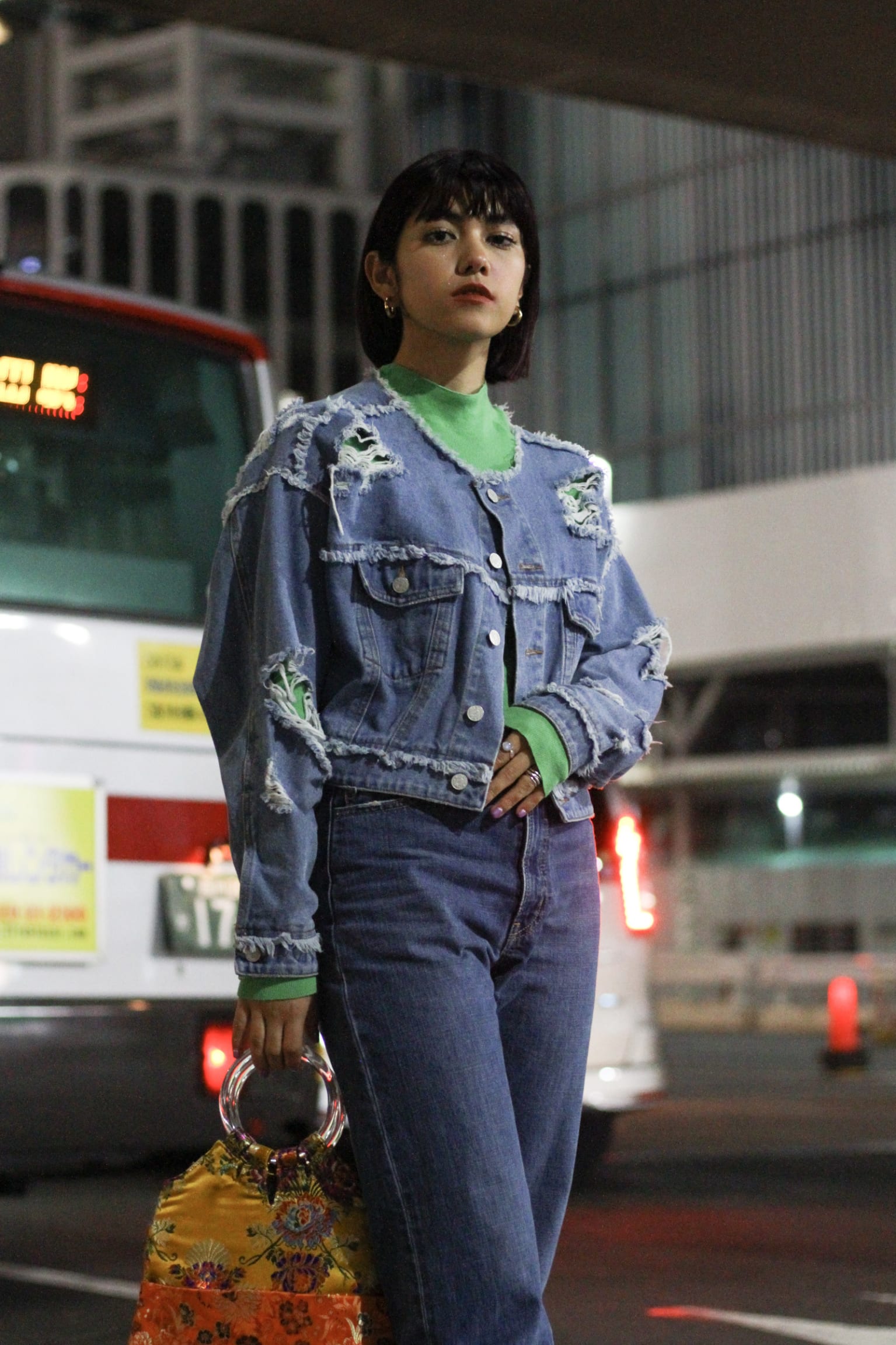 <p class="box grey column large-centered">《Yeo Jin Lee》<br />アウター: KENZO<br />ボトムス: vintage<br />ペンダント: vintage<br />イヤリング: vintage<br />来場ブランド:PERMINUTE</p>