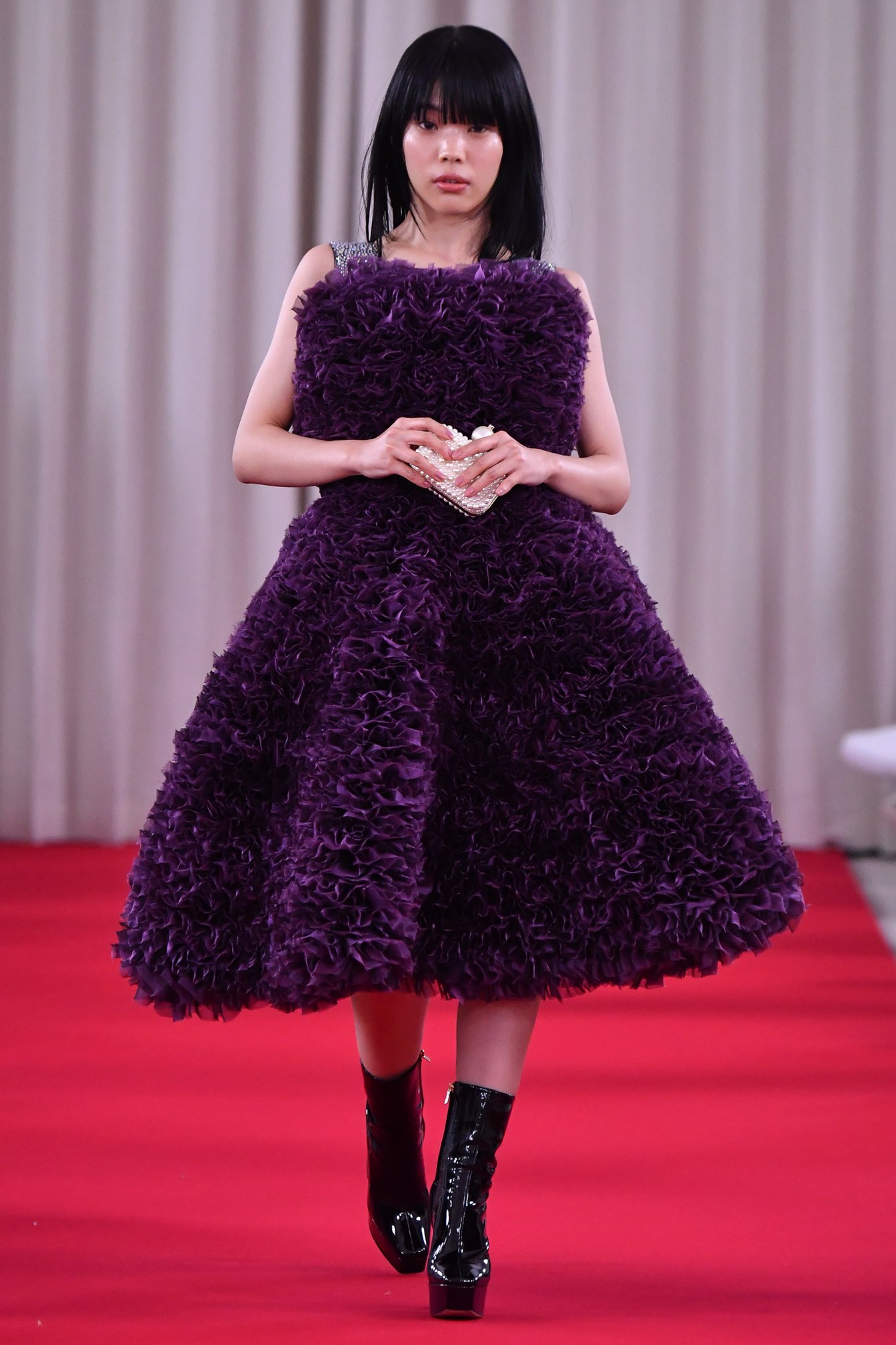 ランウェイは2フロアに分かれ、1つ目のフロアの演出はレッドカーペット。モーリス?ラヴェルが作曲したバレエ音楽「ボレロ」が流れ、色鮮やかなドレスをまとった個性豊かなモデルが登場した。SUMIRE、森川葵、中山咲月、松田ゆう姫、玉城ティナ、ローレン サイ、仁村紗和らモデルをはじめ、アイナ?ジ?エンドやリトル?ブラック?ドレス(Little Black Dress)などのアーティスト、歌舞伎役者の市川染五郎、大島優子、ともさかりえ、寺島しのぶらの俳優を含む13人が歩いた。堂々としたウォーキングも相まって、会場は「ファッションショー」というよりも、アカデミー賞やトニー賞などの「授賞式」を思わせた。