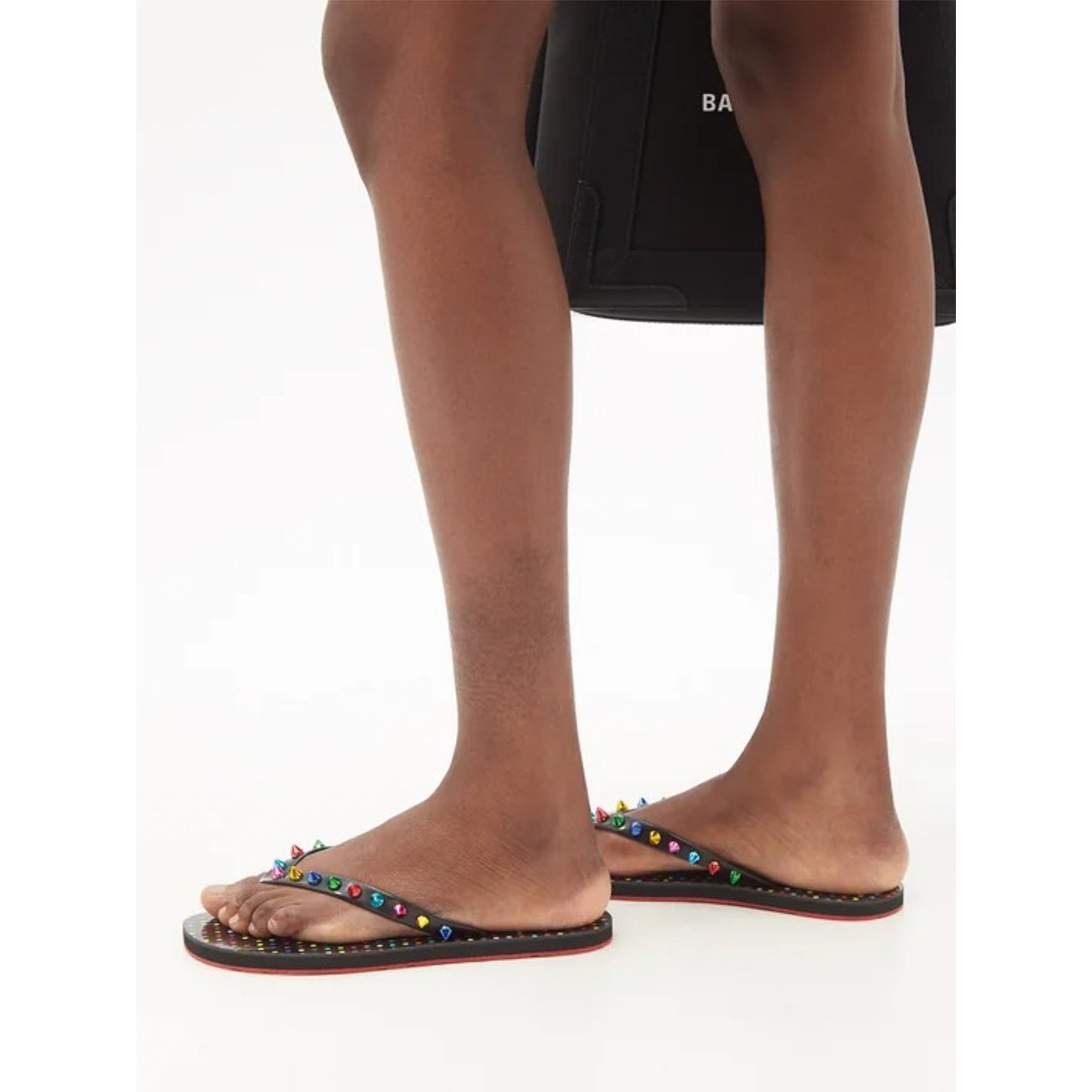 「クリスチャン ルブタン(Christian Louboutin)」からは、ブラックのボディにマルチカラーのスパイクとドットが散りばめられた、パンクな遊び心漂う一足をチョイス。ビーチサンダルというカテゴリの中でひと際存在感を放つ、おしゃれに差を付けられるアイテムです。