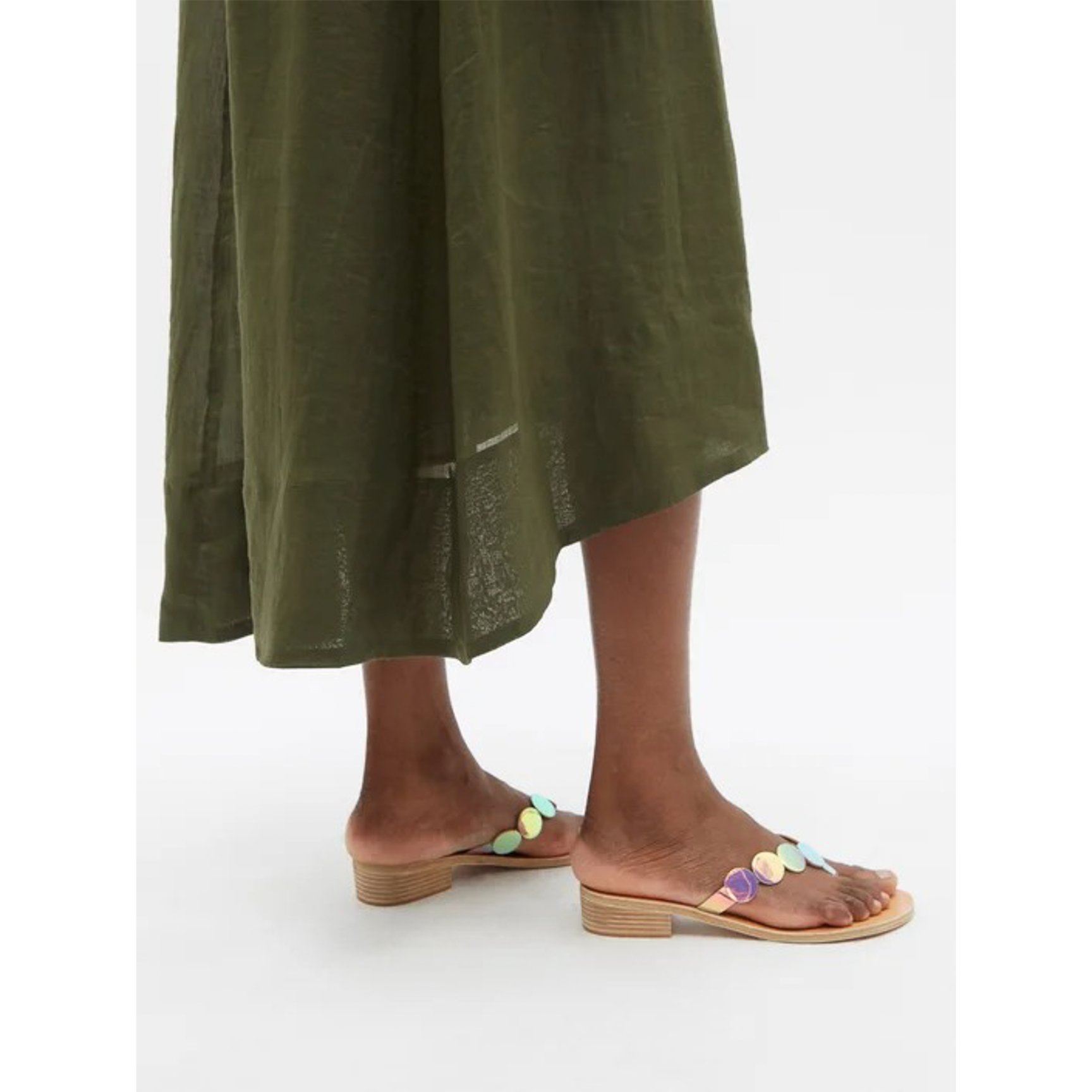 しゃぼん玉のようにやさしく輝く、「エンシェント?グリーク?サンダルズ(Ancient Greek Sandals)」のホログラフィックトングサンダル。光の入り方により様々な色合いを見せるロマンティックな一足は、ギリシャの熟練した職人によるハンドメイド作品。