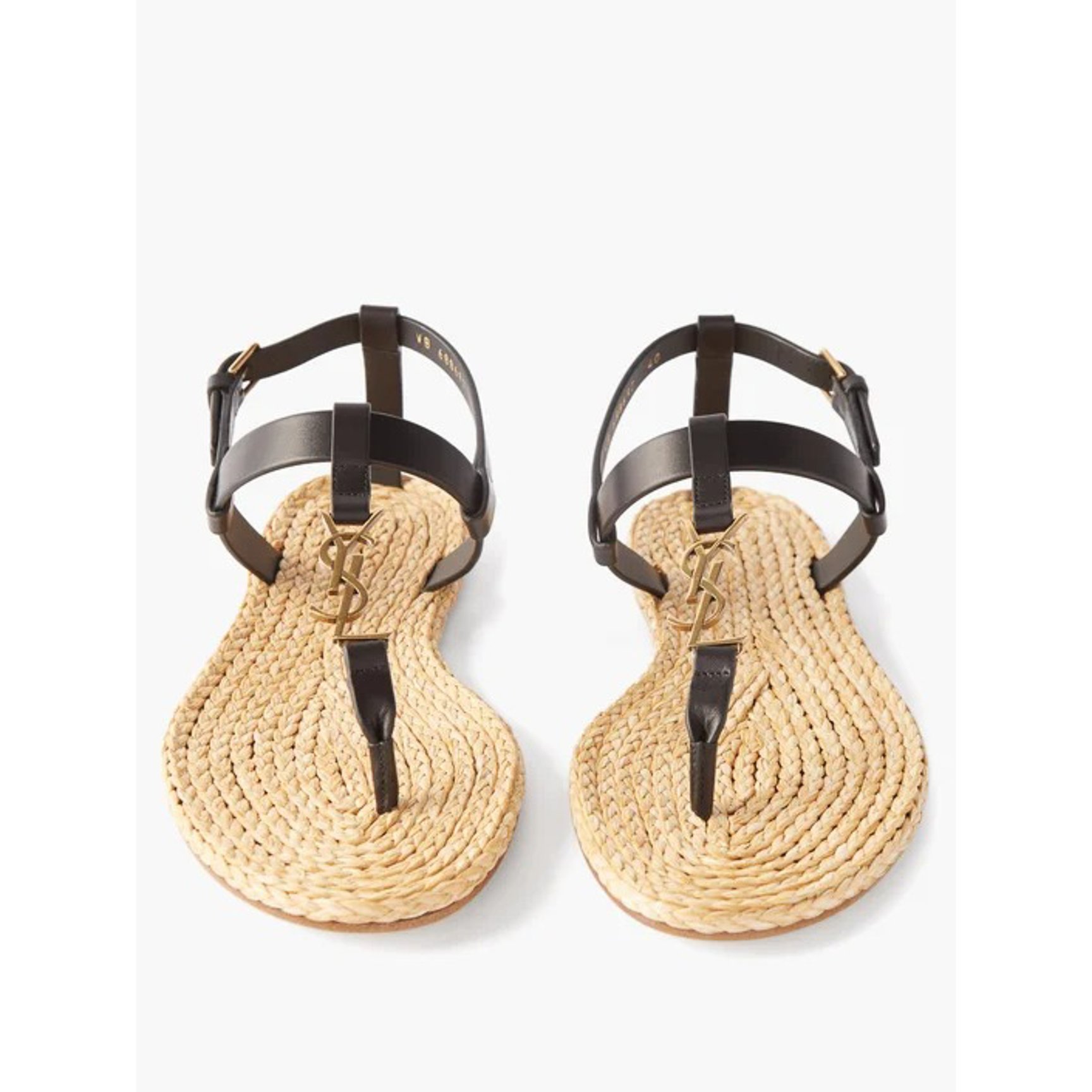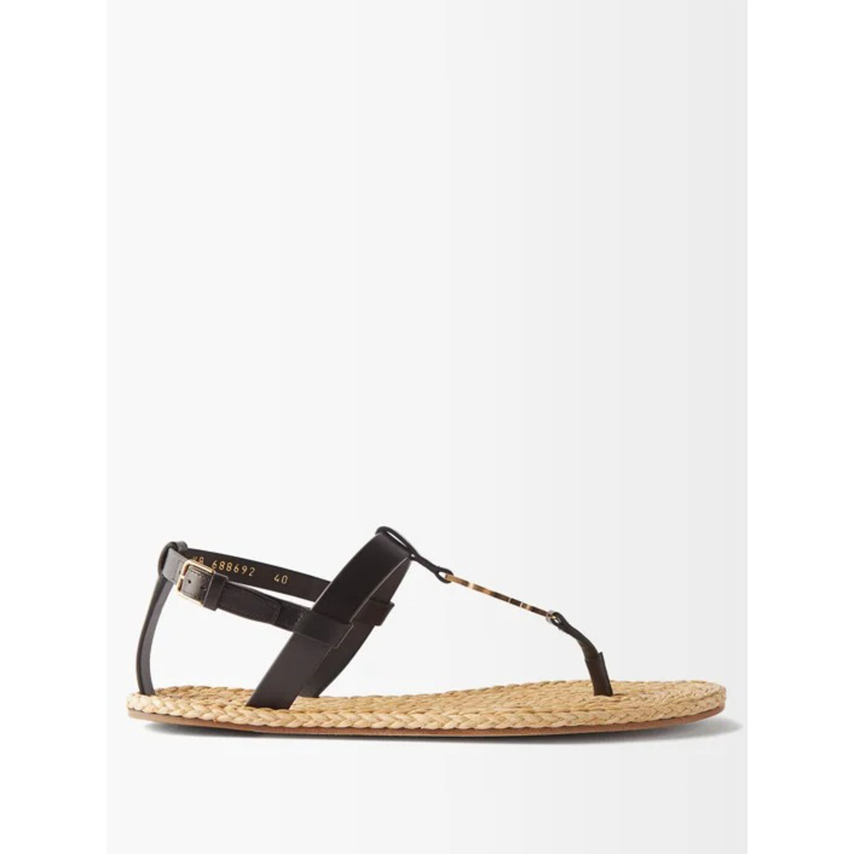 柔らかなレザーストラップに、YSLロゴが凛と輝く「サンローラン(SAINT LAURENT)」のカサンドラサンダル。繊細に編み込まれたジュートのフットベッドがサマーシーズンの気分を上げるアクセントとして、涼し気にコーディネートを底上げ。