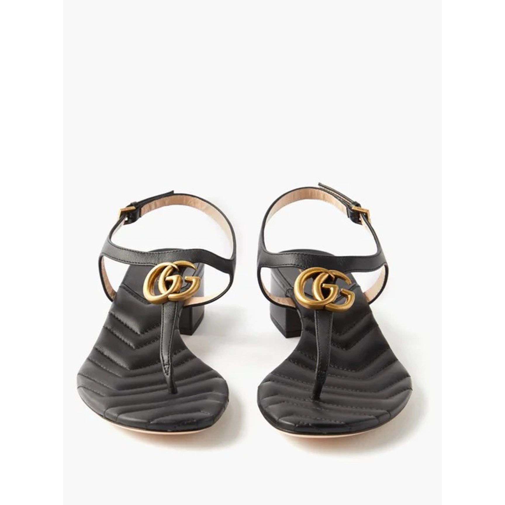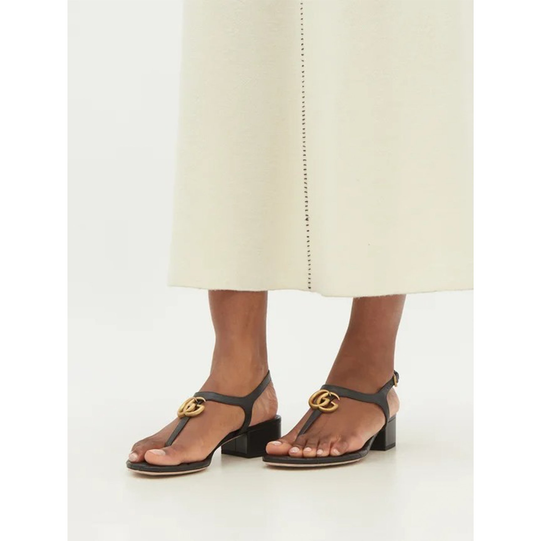 GUCCI GGマーモント ブロックヒール レザーサンダル ?108,900(関税?消費税込)