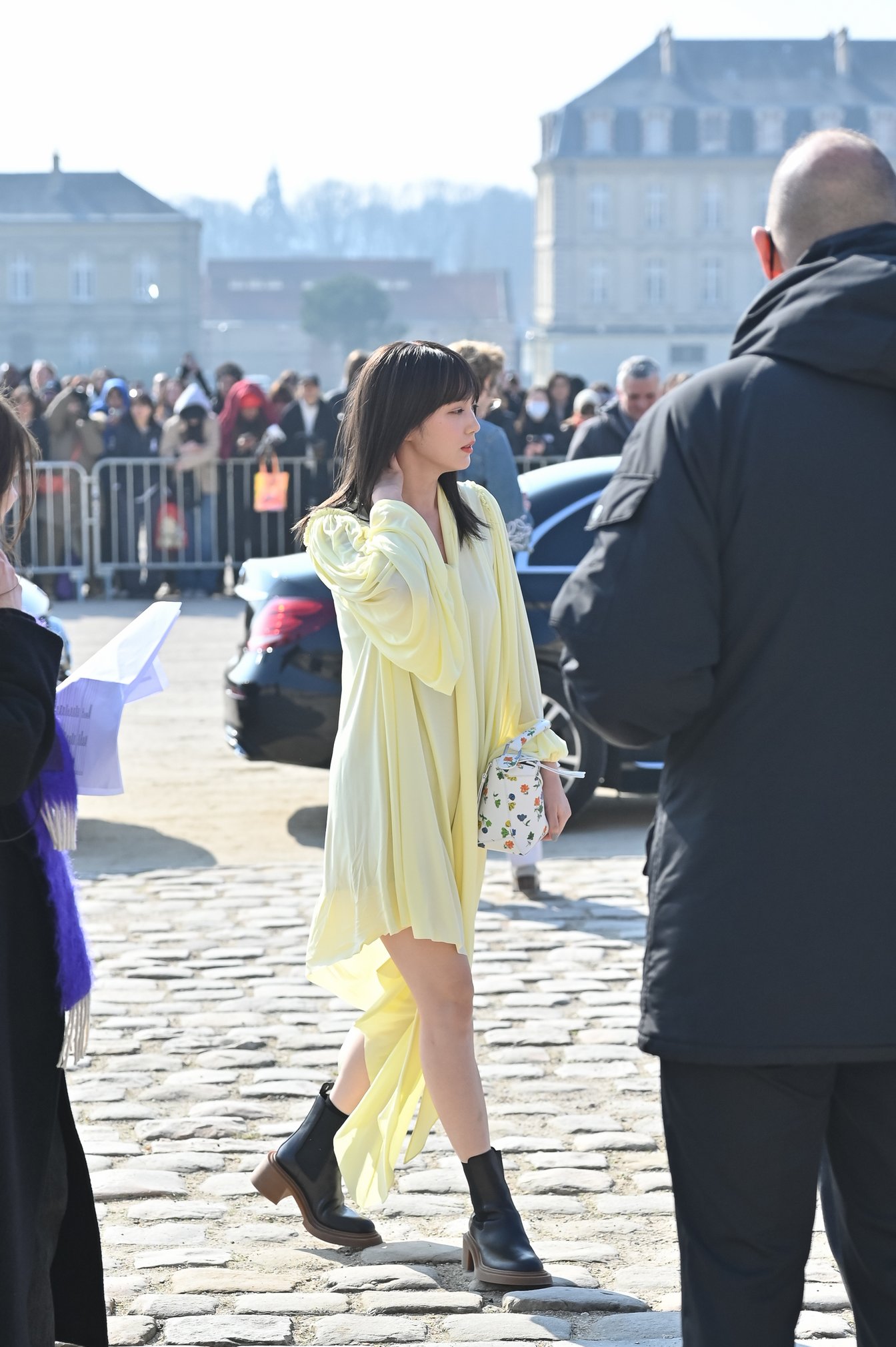 パリ?ファッションウィーク5日目の3月3日、ヴァンセンヌ城の特別な門が開かれると同時に、世界各国から招かれたゲストらが続々と到着。そこに、ひときわ目を引くバニラ色のドレスをまとった本田さんが現れました。周辺に集まった一般客の歓声とパパラッチのフラッシュを浴びながら車を降りて、城の敷地内へと足を踏み入れます。