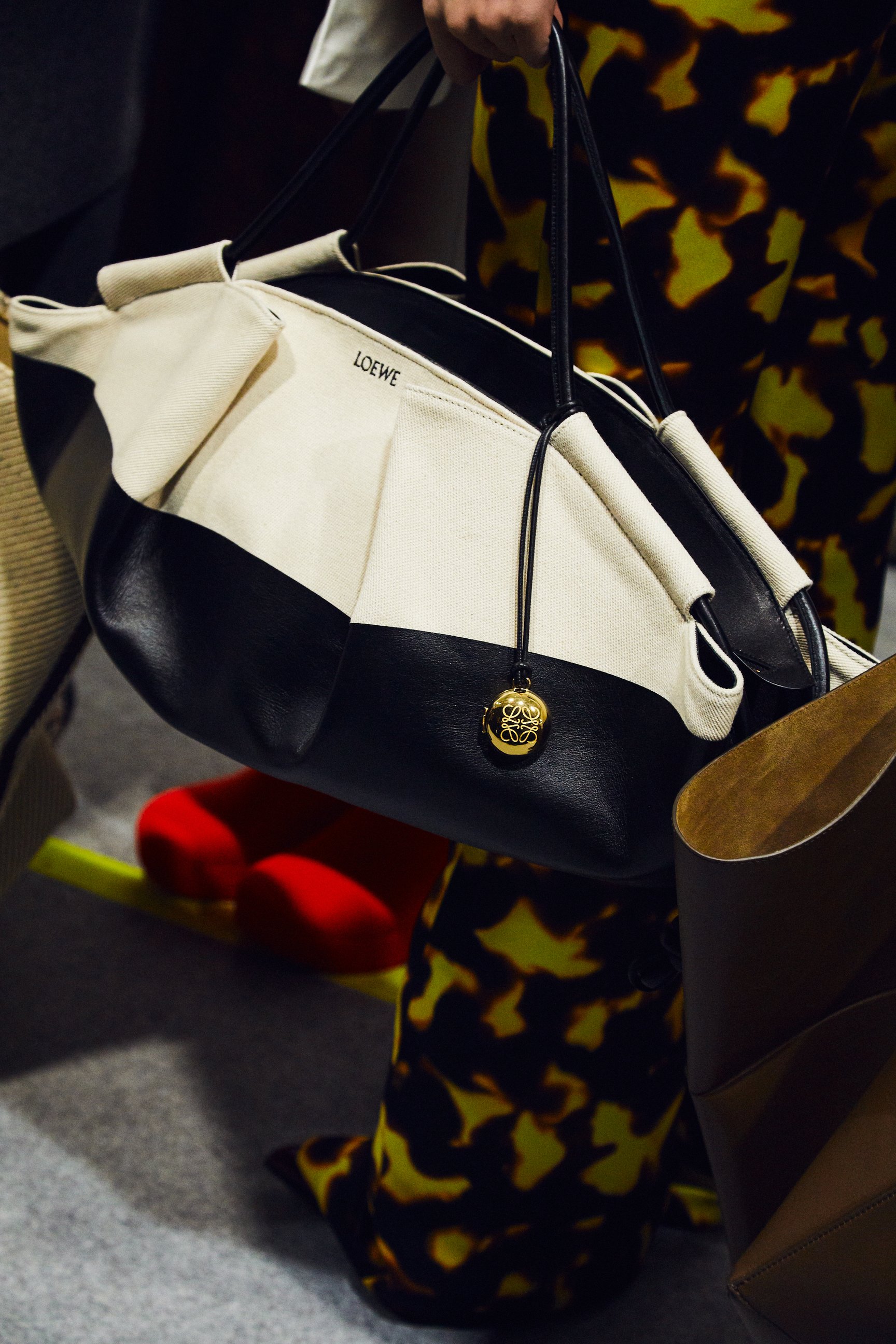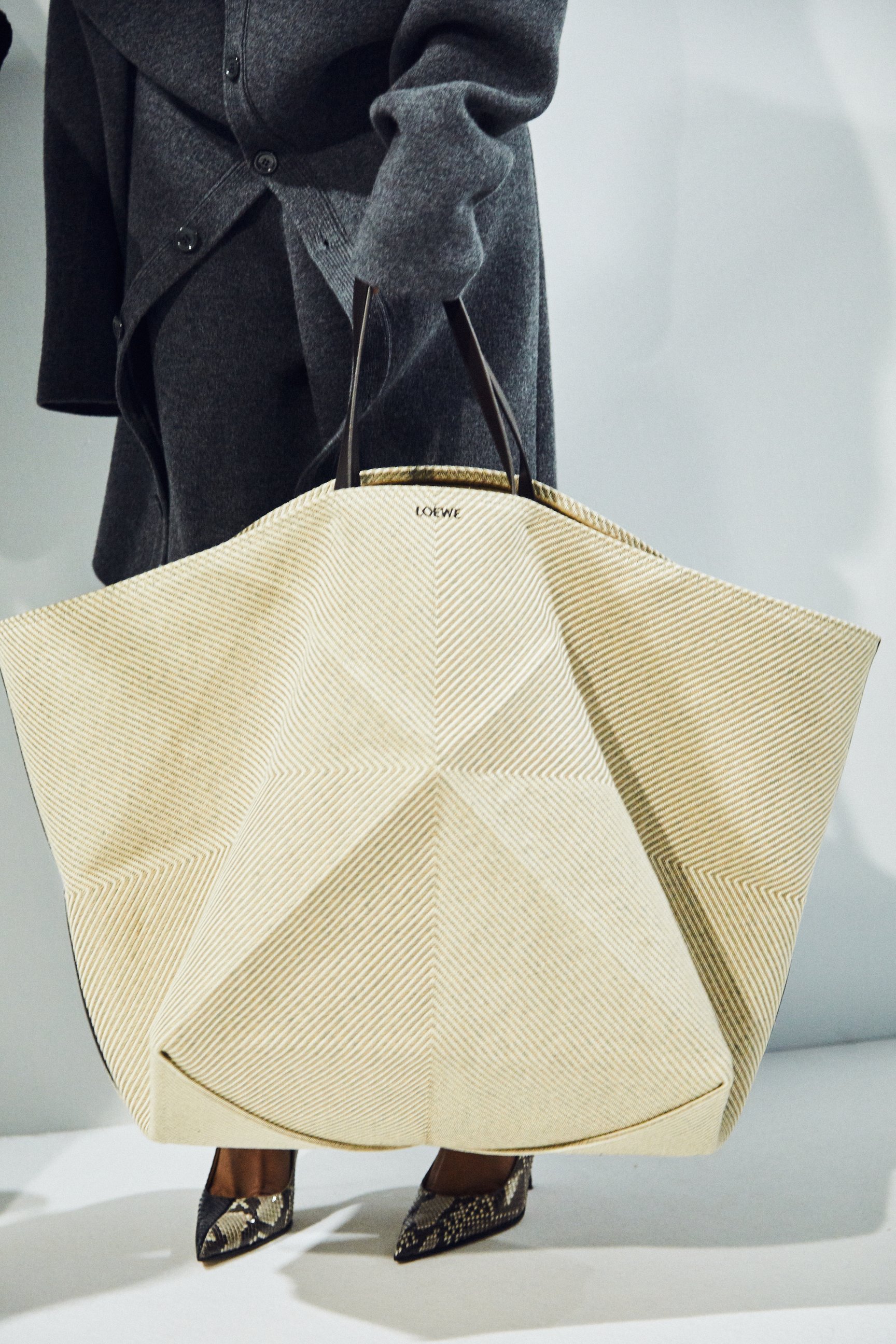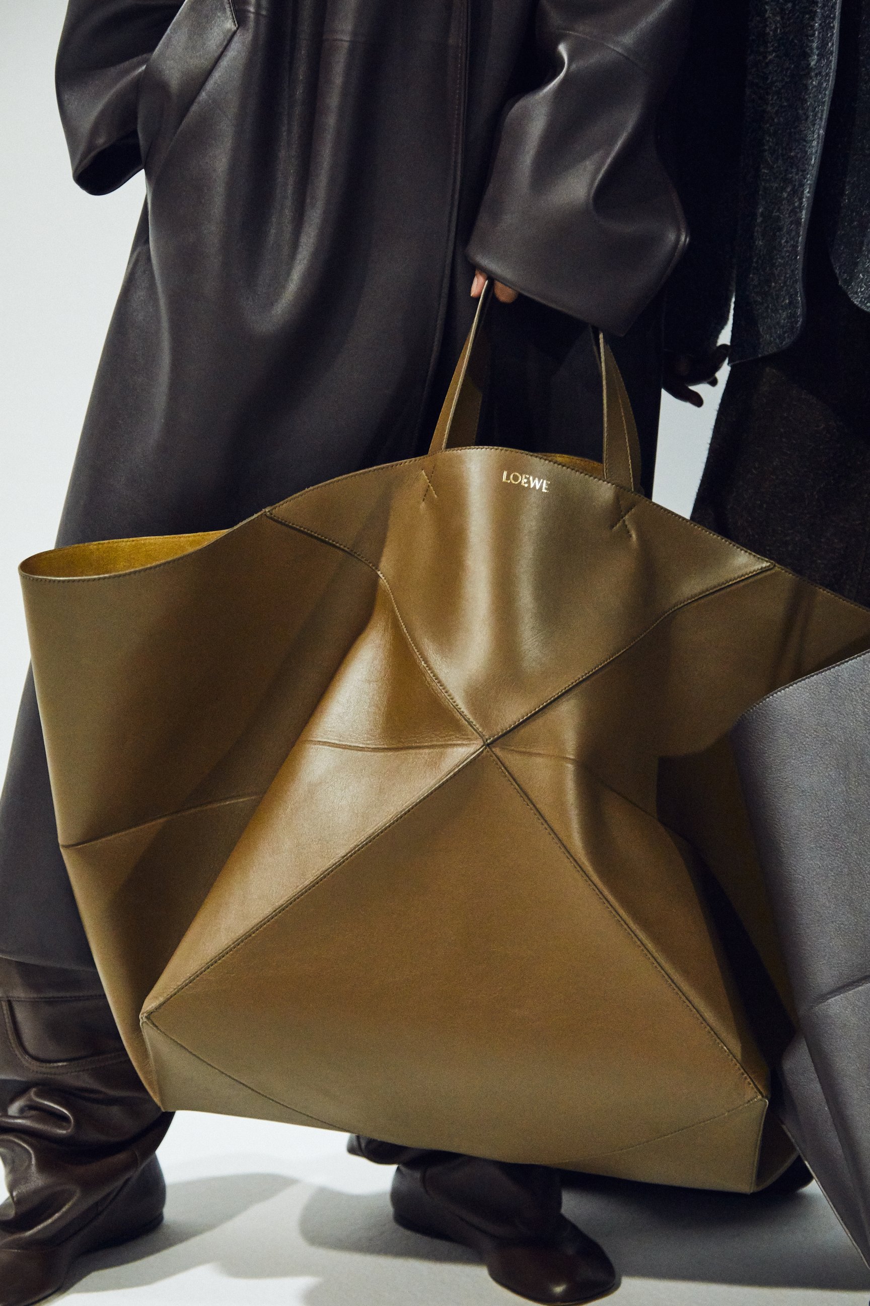 オーバーサイズのパズル トートバッグやハ?セオハ?ック?、パンツのディテールを取り入れたルーズなブーツ、ベルベットリボンのパンプスなど、ロエベの新たなアイコンとなりそうなアクセサリーがランウェイを飾りました。