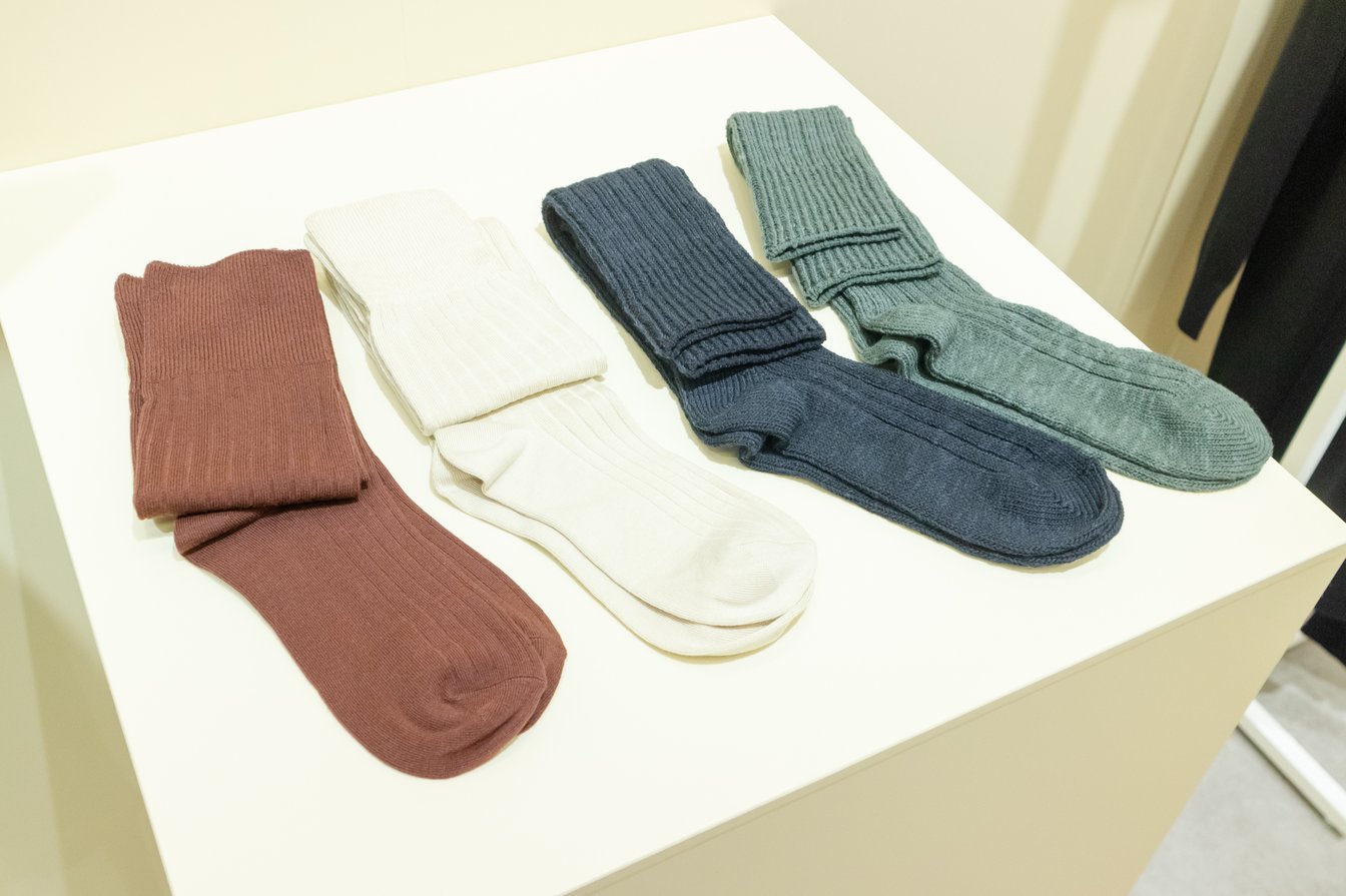 ヒートテックソックスは全4種類を揃え、ウィメンズのニーハイタイプのアイテムは同じトーンのショートパンツと合わせたスタイリングなどで提案します。