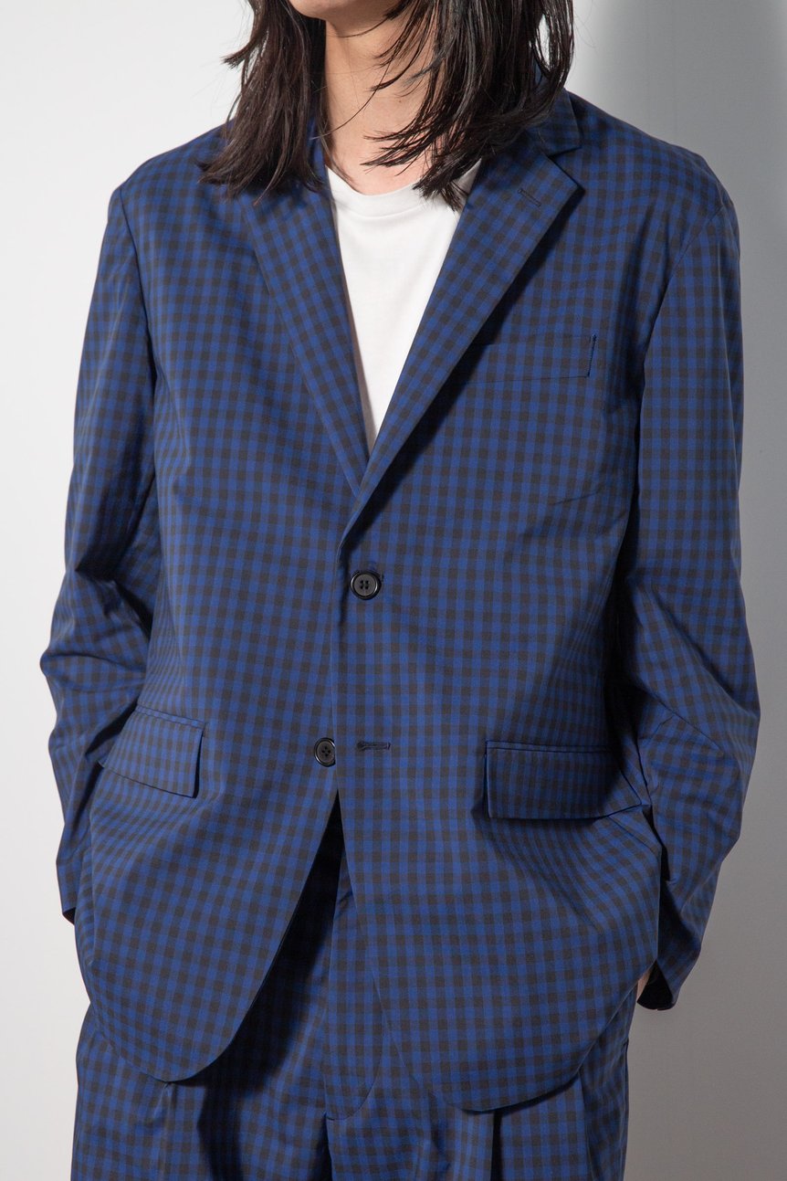 ジャケットは前面の2つに加え、背面に大きめのポケットをあしらい、機能性をアップ。パンツはサイドのほか、フラップなしとフラップ付きのバックポケットをデザインしています。ボタンは水牛の角調で、ステッチの配色もアクセントに。価格はジャケットが6990円、パンツが2990円で、無地の「31 BEIGE」「57 OLIVE」「66 BLUE」と、オリジナルチェック柄の「67 BLUE」の4色展開。ジャケットはXS?XXLの6サイズ、パンツはXS?4XLの8サイズを揃えています。今回は全てXLサイズを着用しました。