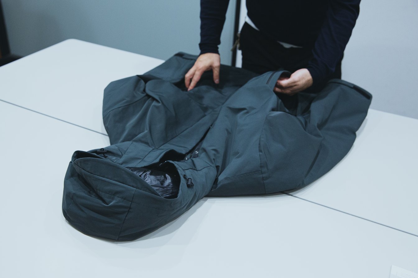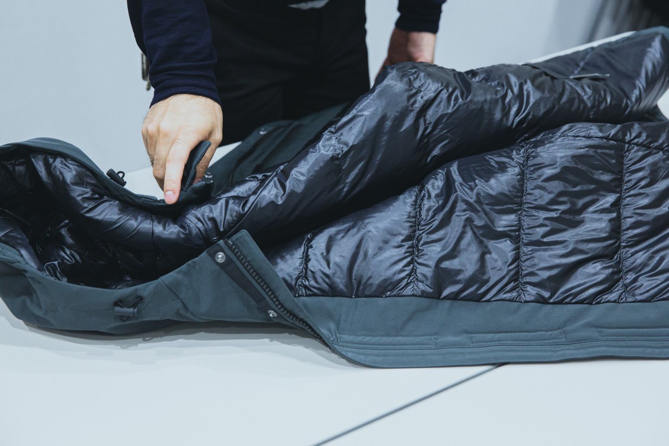 編集A:これは公式のヴィジュアルで見て、かなり良いなと思いました。スポーティーなデザインですね。「ハイブリッド」と商品名についているのは、640フィルパワー以上のダウンと、吸湿発熱綿、2種類を使い分けた仕様なんだそうです。