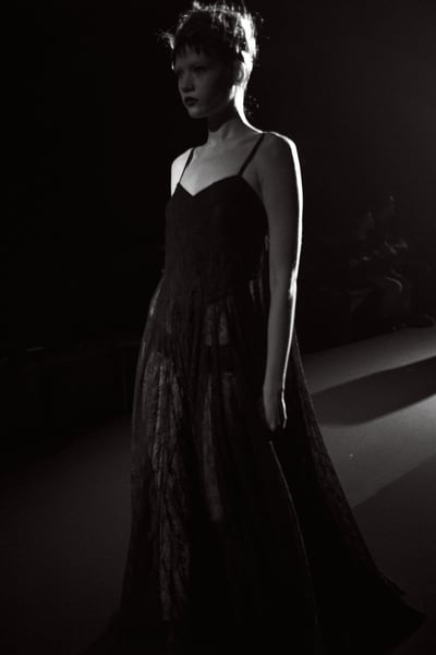 ただクラシックにするのではなく、そこにヴィヴィアーノらしいパンキッシュさやモダンな要素、今っぽいテクスチャーを混ぜていきました。具体的には、モデル全員にわざと真っ黒で短い前髪をつけて、地毛とのコントラストやシャープさを際立たせています。