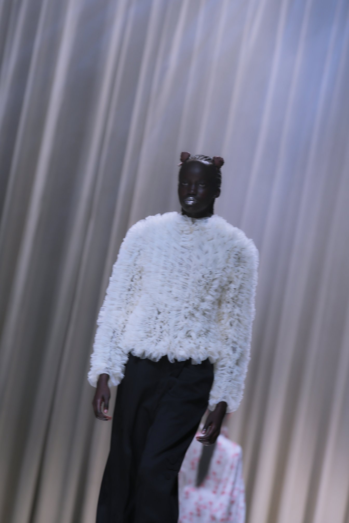 「(人を興奮させるられるような)馬鹿らしいドレスを作りたかった」とデザイナーが笑って説明するこれらのドレスは、今後レッドカーペットや、アーティストのライブ衣装として脚光を浴びる可能性を期待させるもの。ファッションショーが、ブランドの実験的な試みを発信し、新たなクリエイティブな境地を切り拓くための重要な舞台であることを改めて実感した。