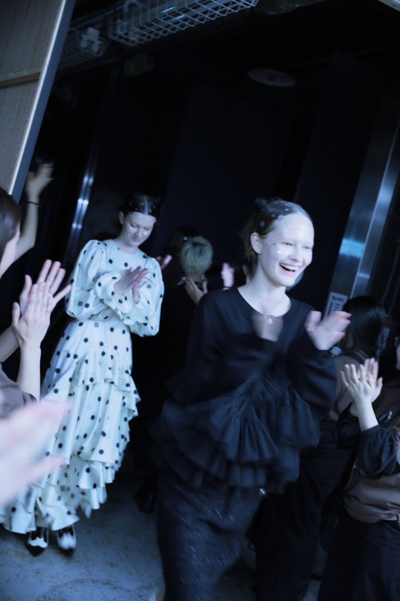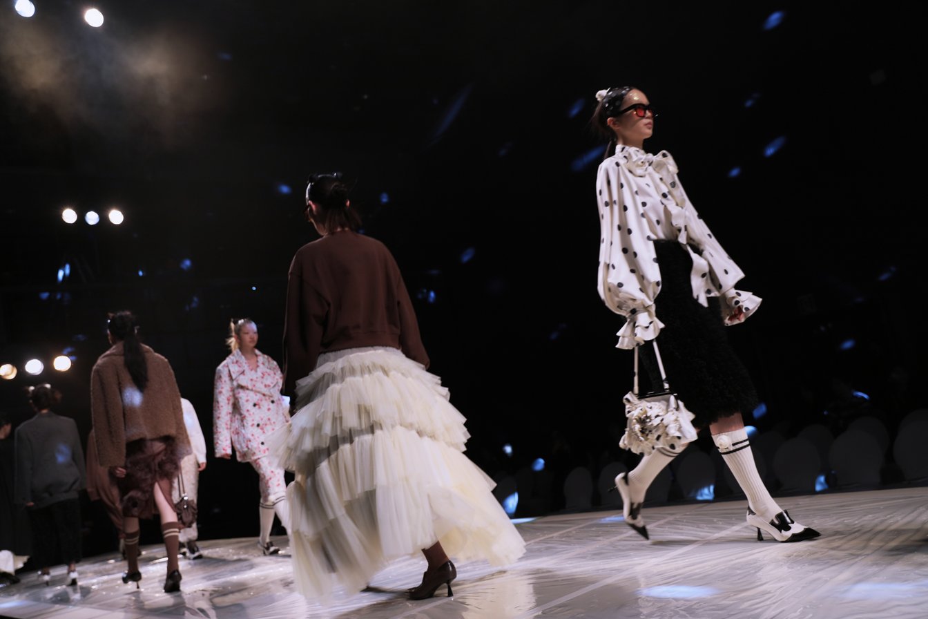 恵比寿ガーデンプレイス内のガーデンホールに大きなディスコボールを設置し、ファッションショーの王道であるステージ台のある1本のランウェイを設置。ブランドが得意とするドラマチックなシルエットや遊び心あるデザインと、真剣に向き合える場が用意されていた。