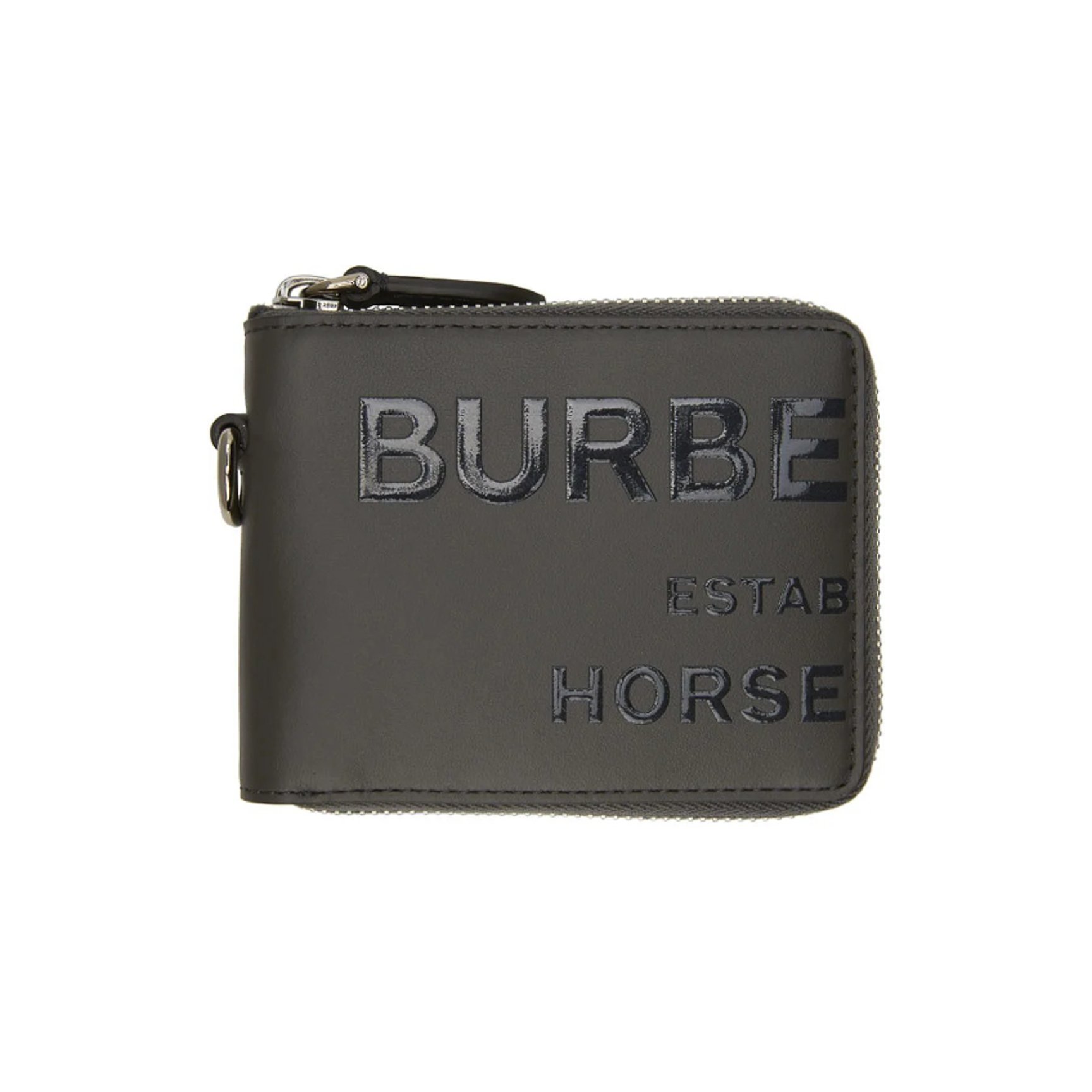 本社住所をフィーチャーした、ホースフェリープリントデザインがスタイリッシュな「バーバリー(BURBERRY)」のジップウォレット。ネックストラップを取り付けられるリングが装備されているので、レジャーやワンマイルコーデの実用的なファッションアクセントとしても活躍する予感。