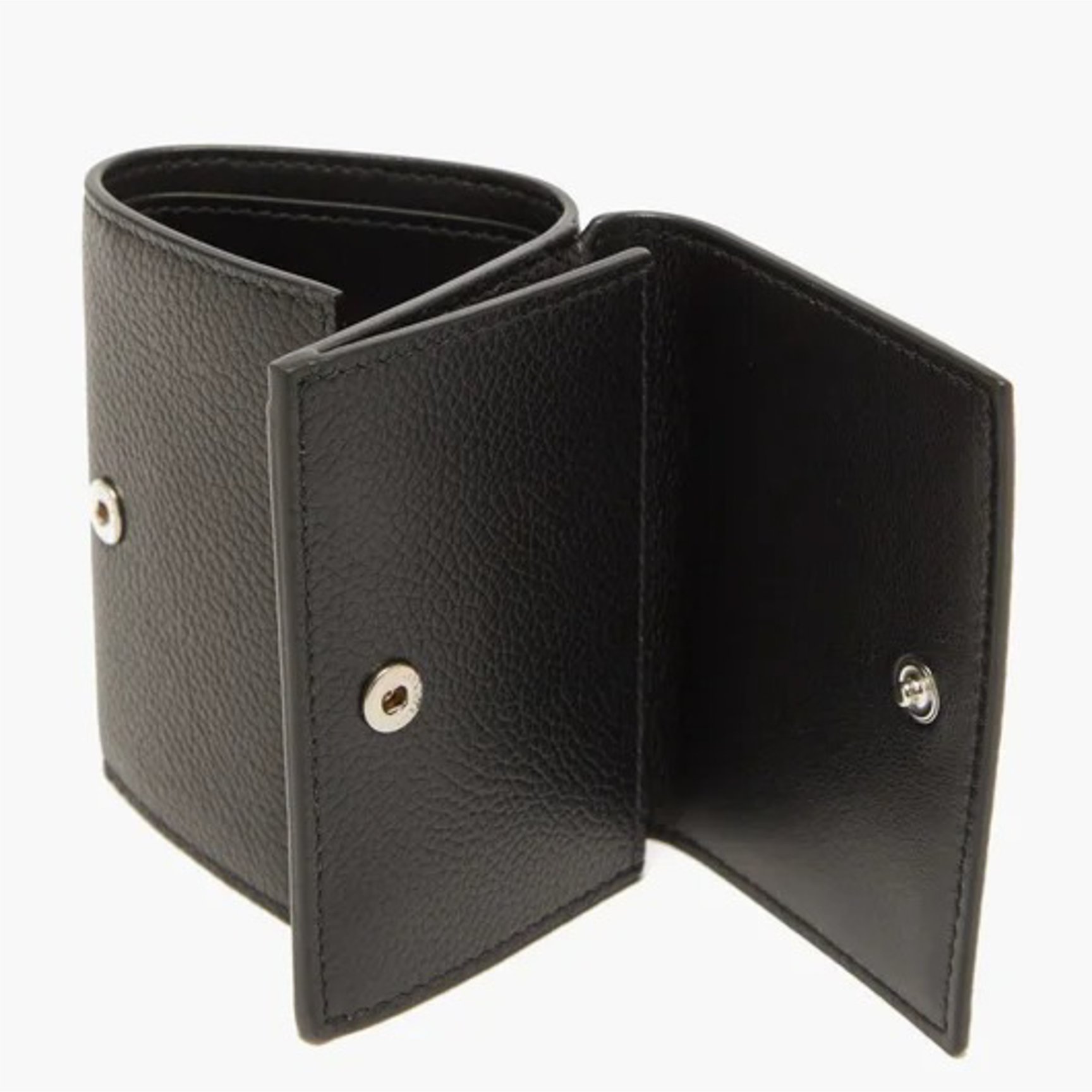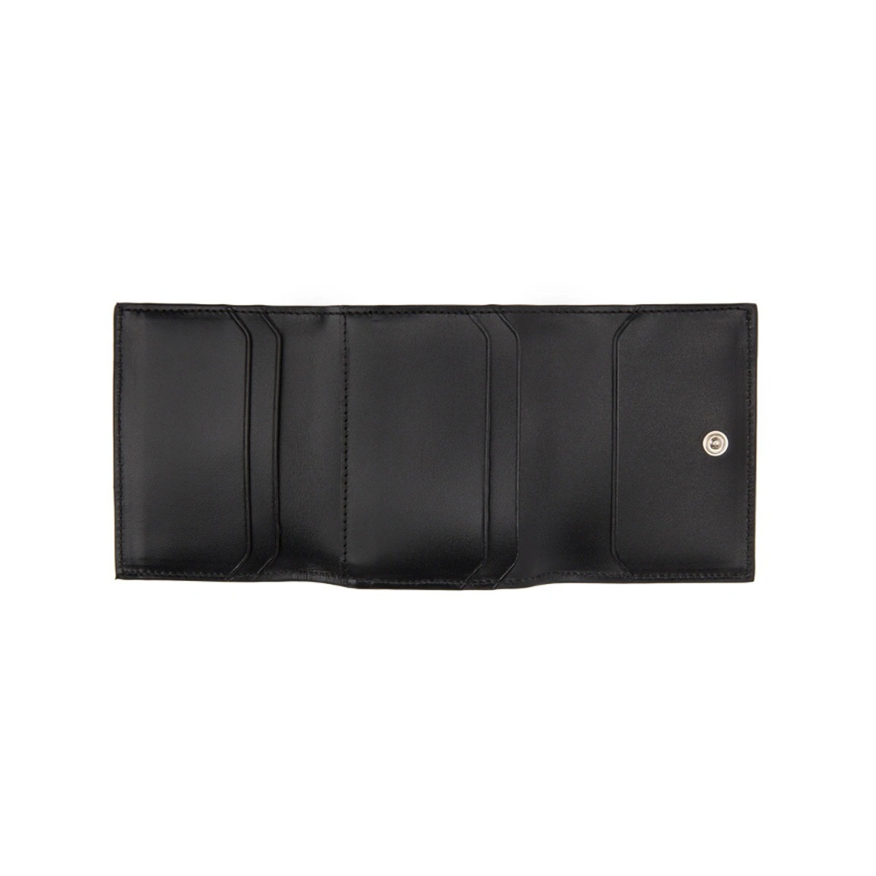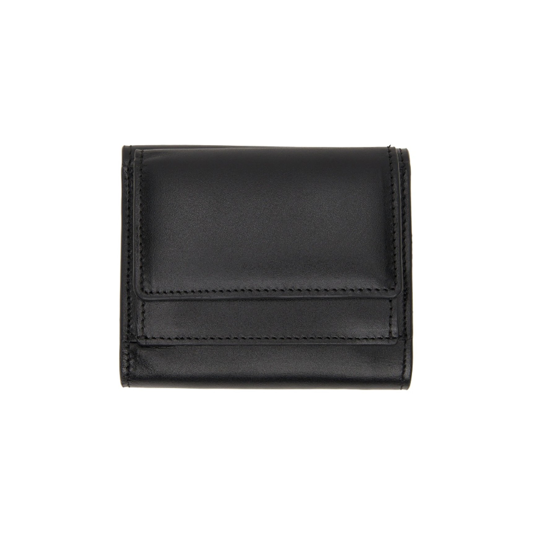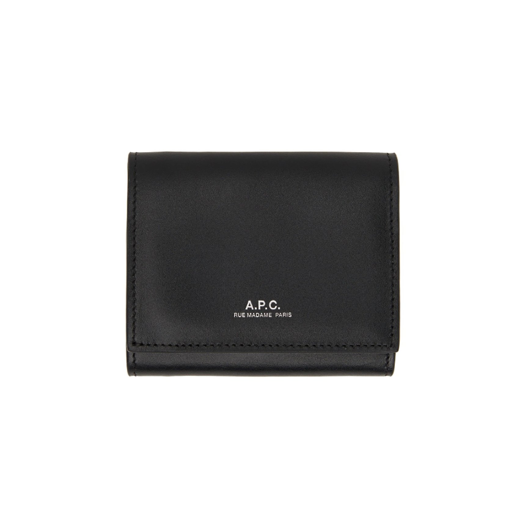 真っ黒なボディにミニマムなロゴが映える「アーペーセー(A.P.C)」の三つ折り財布。カジュアルにもビジネスにも活躍の予感がするアイテムは、背面コインポーチと内側カード入れの使い勝手はもちろん、デザインも申し分なし。