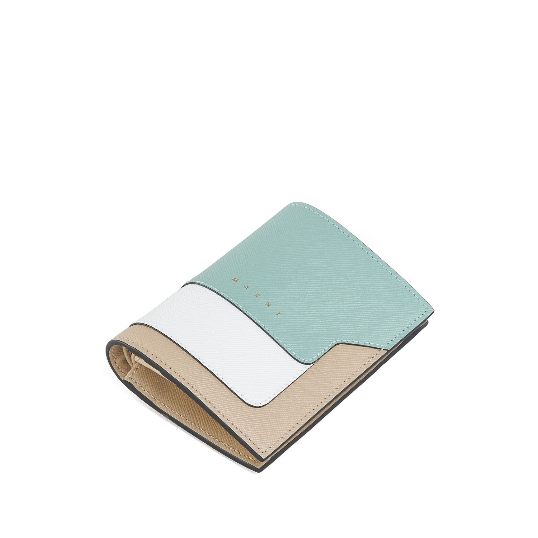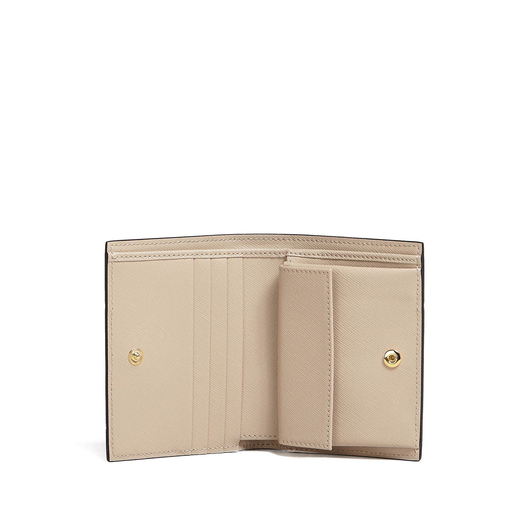 明るいトーンのカラーバランスに惹かれる、「マルニ(MARNI)」定番の二つ折り財布。手馴染みの良いサフィアーノレザーの見開きには、スナップボタン留めのコインポケットと4つのカードスロット、札入れを配置しています。ハッピーなラッキーカラーが見つかる豊富なバリエーションも嬉しい限り。