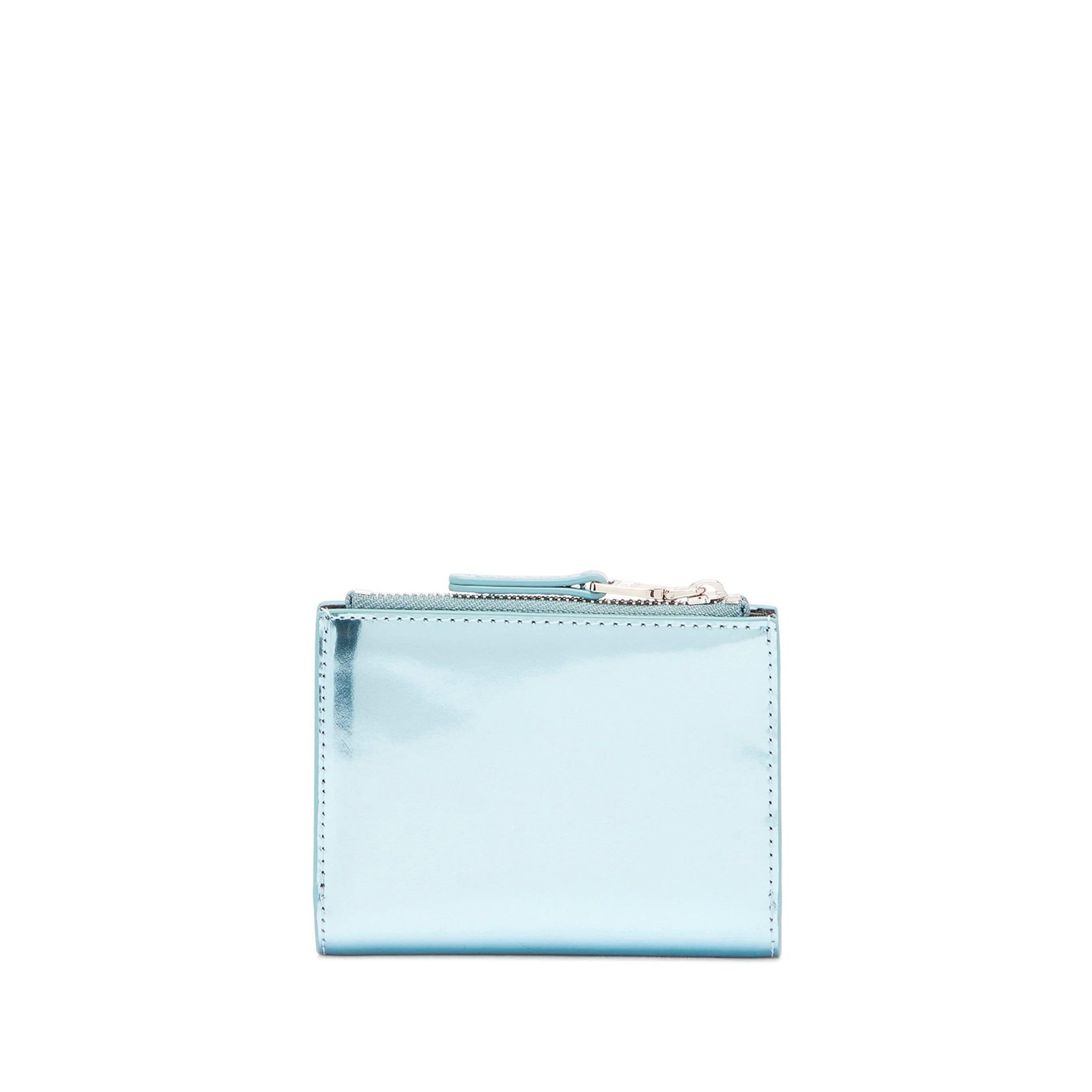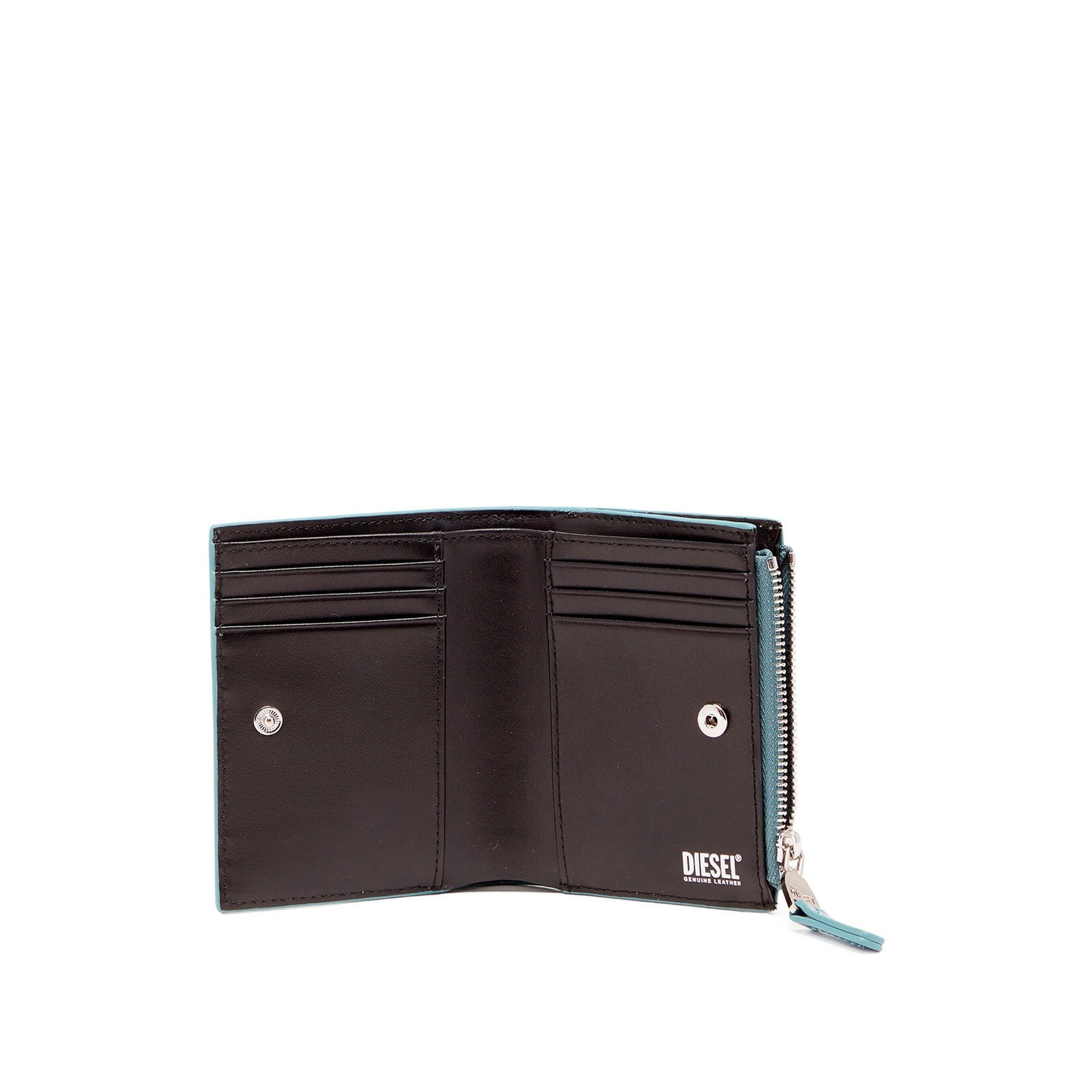 アイコニックなオーバルDを、メタリックなライトブルーのボディにパッチした「ディーゼル(DIESEL)」の二つ折り財布。札入れと閉じたままでもアクセス可能なコインケース、スリムな設計のカードスロット×6をシックなブラックの見開きに備えた、存在感のある色合いにパワーが漲るアイテムです。