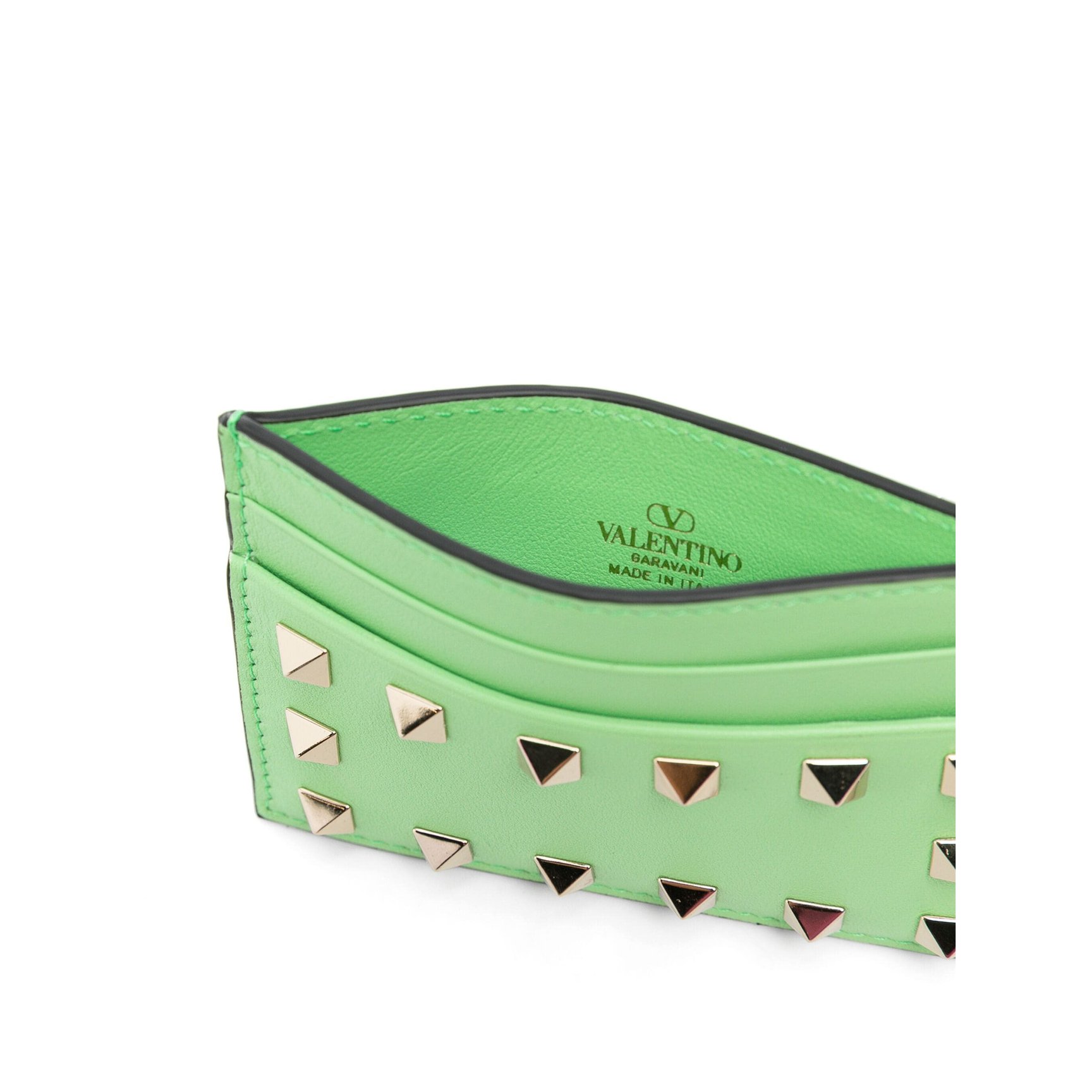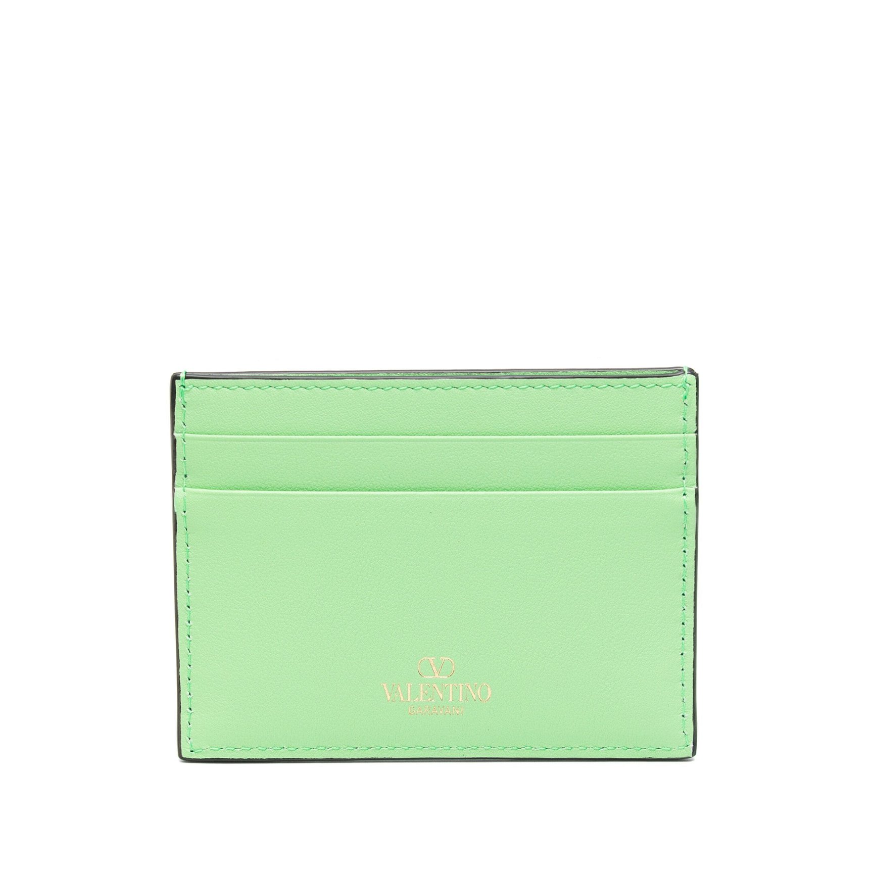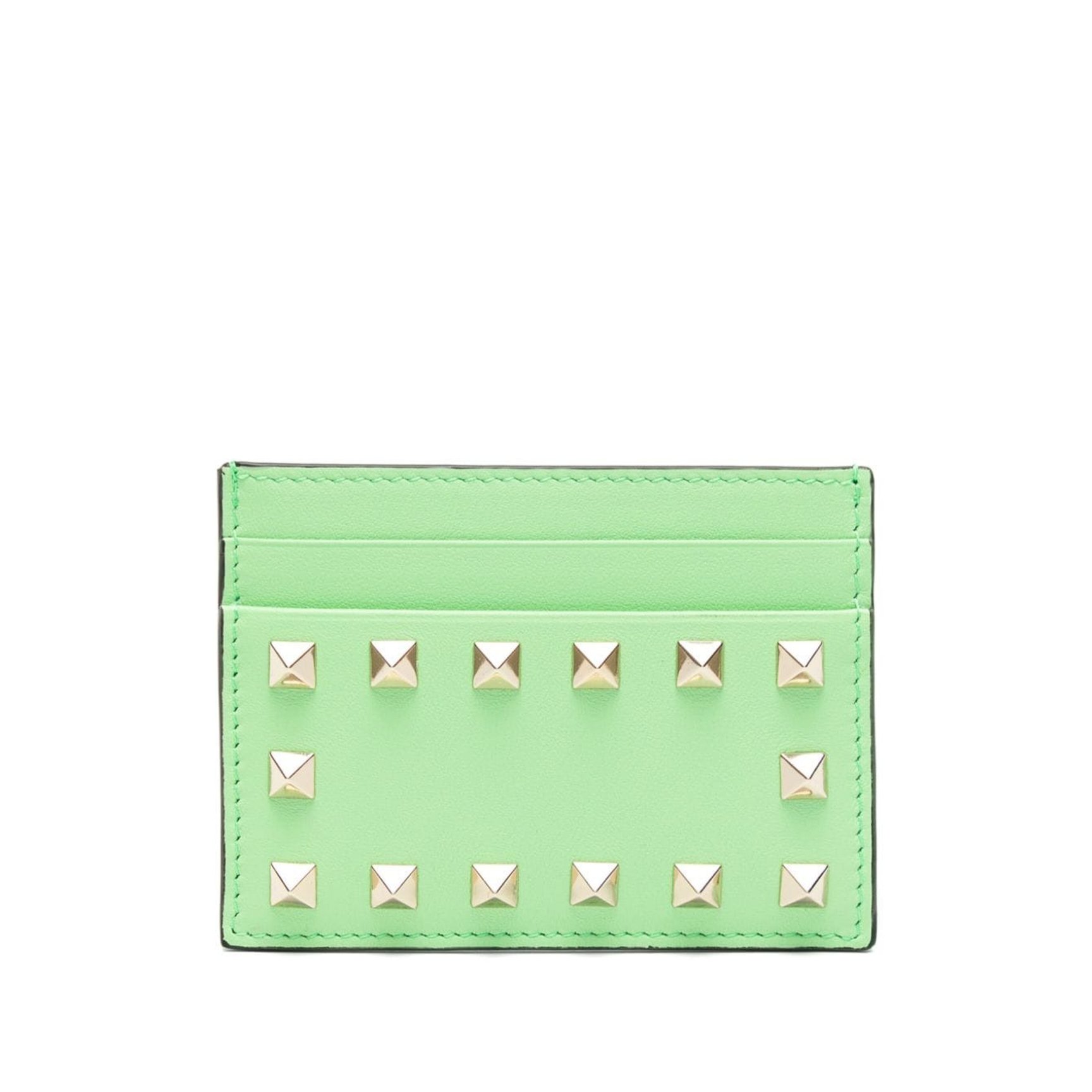 ネオングリーンとゴールドのロックスタッズが眩しい「ヴァレンティノ ガラヴァーニ(VALENTINO GARAVANI)」のミニケースは、カードスロットを表裏共に2つずつと、中央にパカッと開くフラットポケットを装備。輪郭が引き締まるブラックのコバ処理を施した、なめらかなカーフレザーで仕立てています。