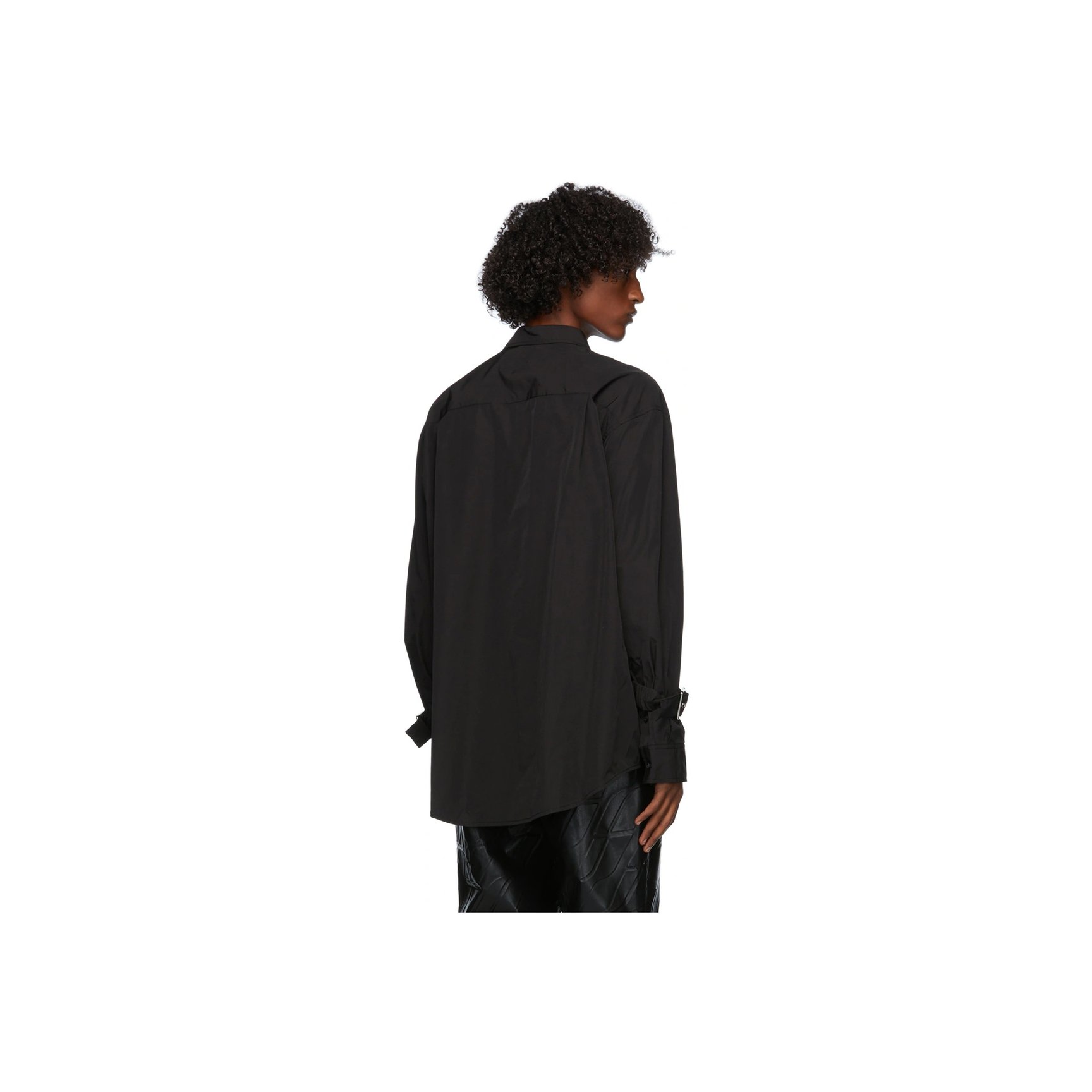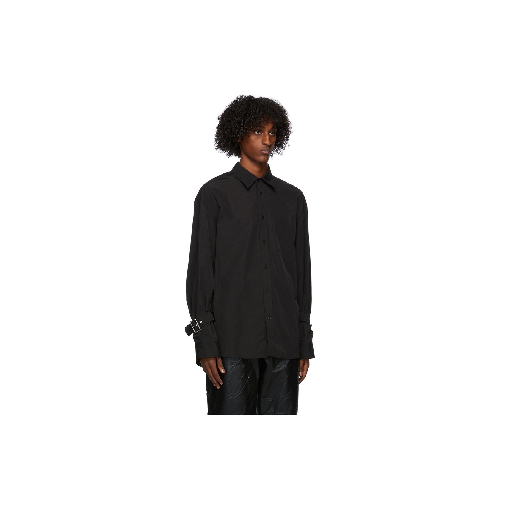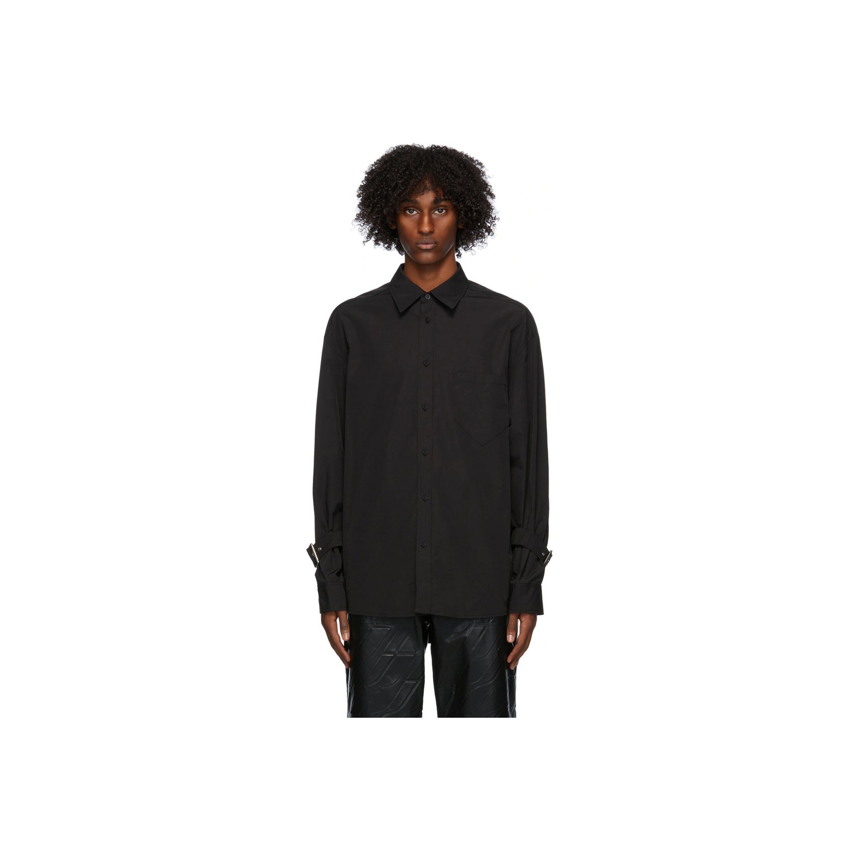シンプルなブラックのポプリンシャツは、袖口のバックルディテールがアクセント。奇抜すぎないアレンジで、ベーシックなアイテムにひねりを加えてくれています。