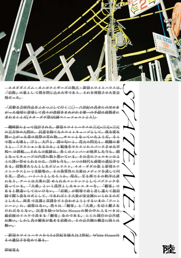 ーーWHITEHOUSE オープンに際しての卯城竜太によるステイトメント