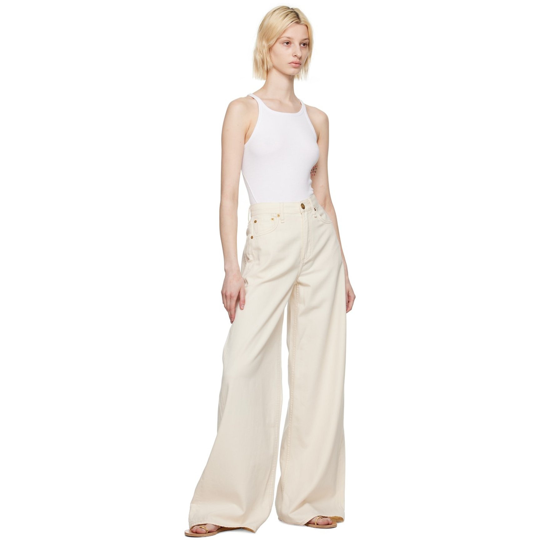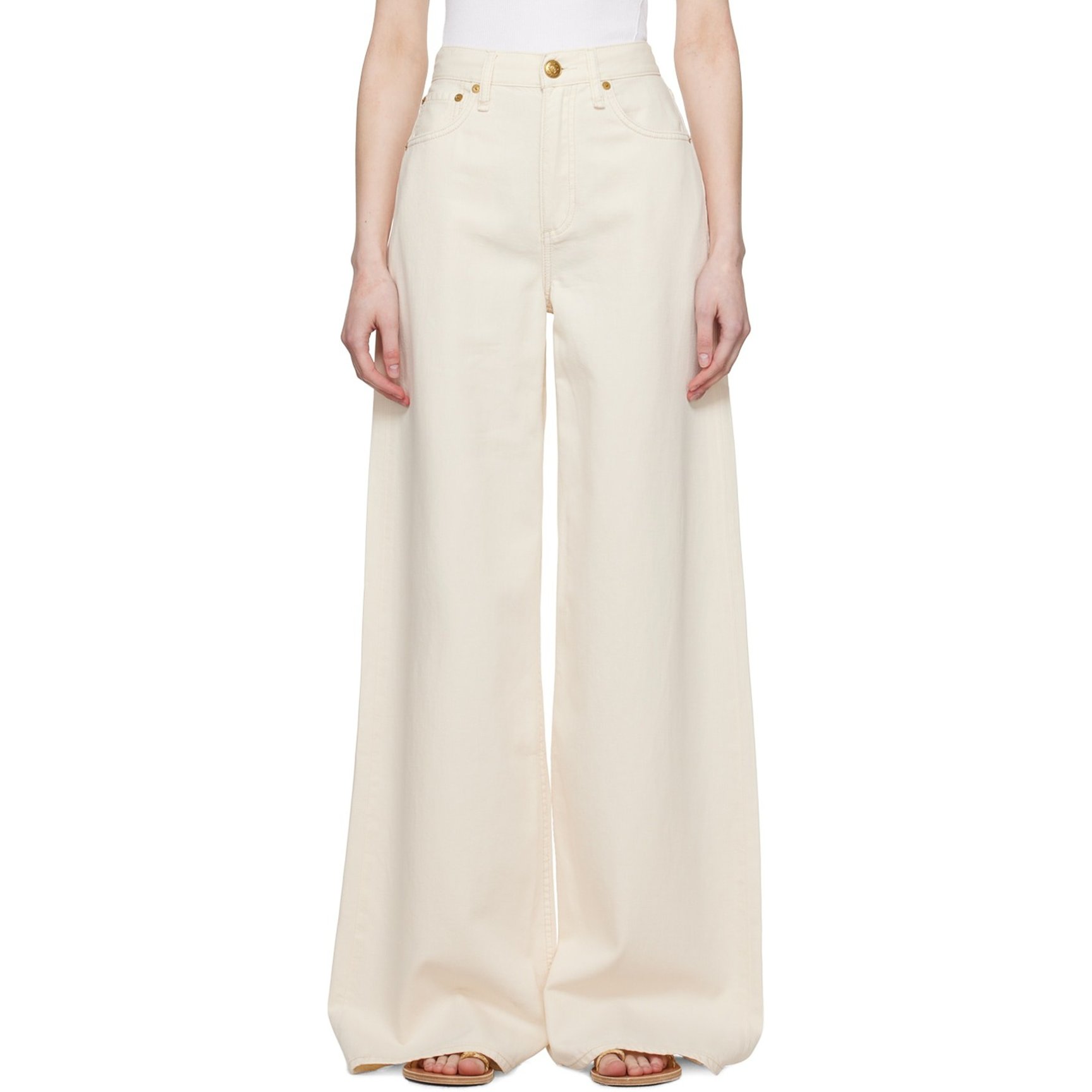 最後にご紹介するのは、たっぷりとした生地がリュクスなオーラを放つ、「ラグ & ボーン(rag & bone)」のホワイトデニム。装飾を省いたシンプルさでワイドレッグジーンズのシルエットを更に惹きたてる、インパクトのある主役級のアイテムです。