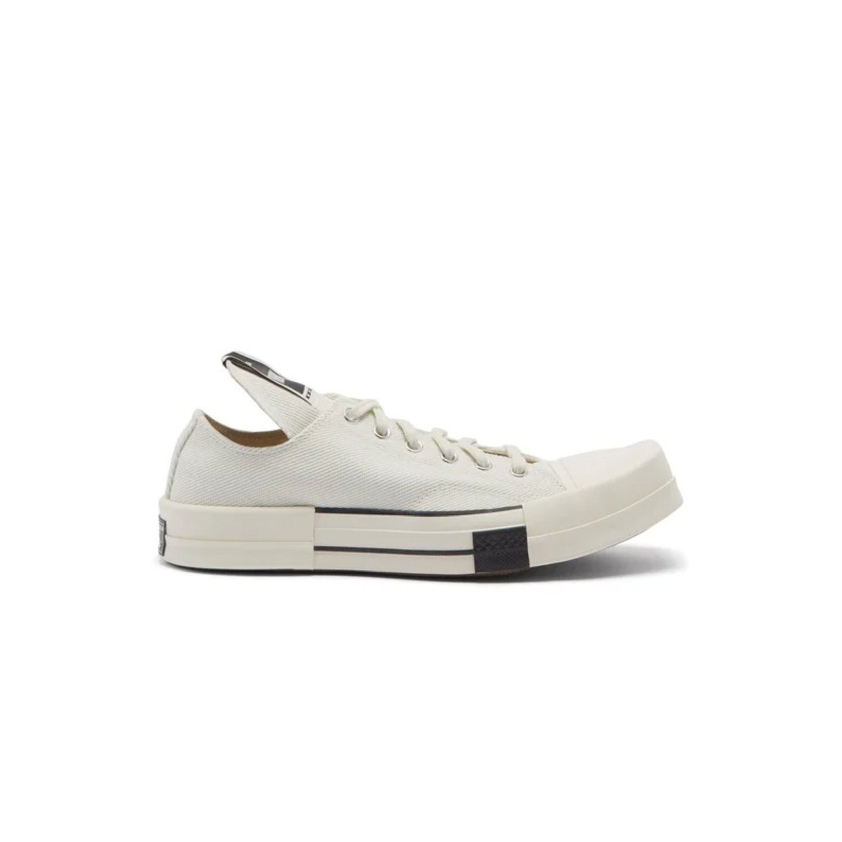 「リック?オウエンス(Rick Owens)」のディフュージョンライン「ダークシャドウ(DRKSHDW)」と「コンバース(CONVERSE)」の注目コラボスニーカー'ターボダーク チャック70'。ブラックのハイカットモデルと共にリリースされたのが、こちらのローカットモデルです。長く伸びたタンにはスペシャルなラベルがパッチされ、スクエア型のトゥキャップがコーディネートにスパイスを与えます。
