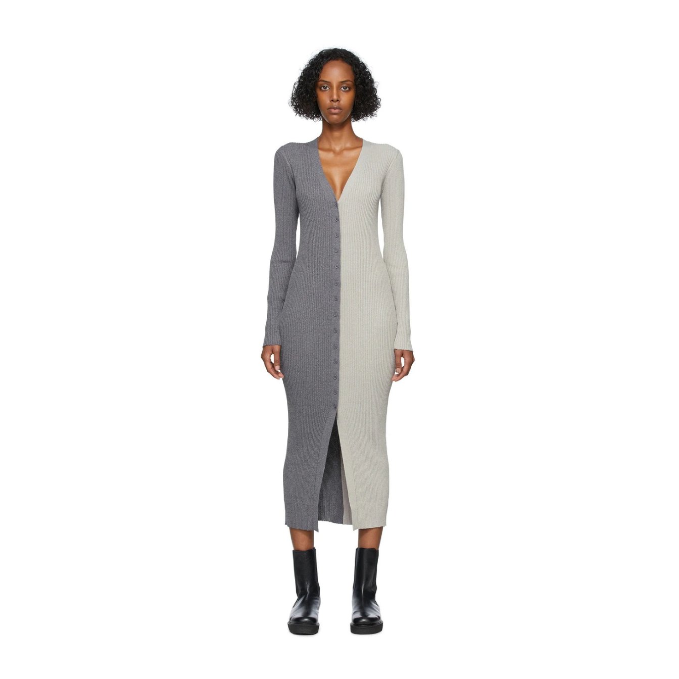 最後にご紹介するのは、「スタウド(STAUD)」のバイカラーがおしゃれなミドル丈ドレス。カジュアルなパーティーシーンにも活躍しそうな一着は、何かと悩みがちな秋冬のワンピース選びを解決してくれます。ボディラインが協調されるので、あえてゆったりとしたサイズをチョイスしウエストベルトで引き締める、という着こなしもおすすめです。
