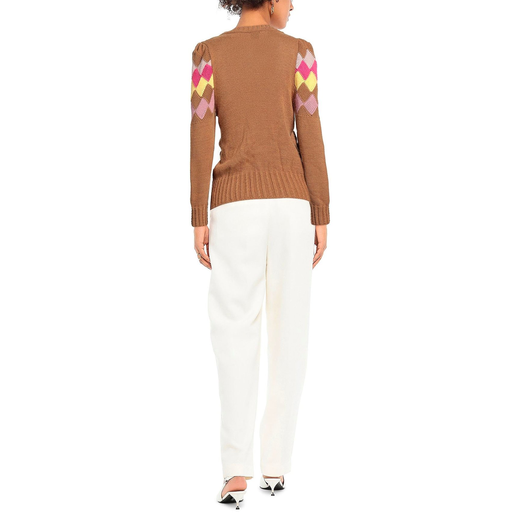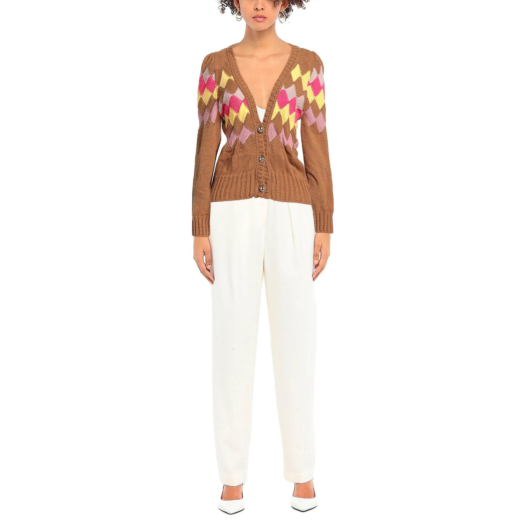 最初にご紹介するのは、カラフルなダイヤモンド柄が鮮やかな「ピンコ(PINKO)」のカーディガン。デイリースタイルをポップに叶える一枚は、大きくカットされたVネックとメタリックなボタンがアクセント。一気に印象が変わる、グレー×ミントの色違いにも注目です。